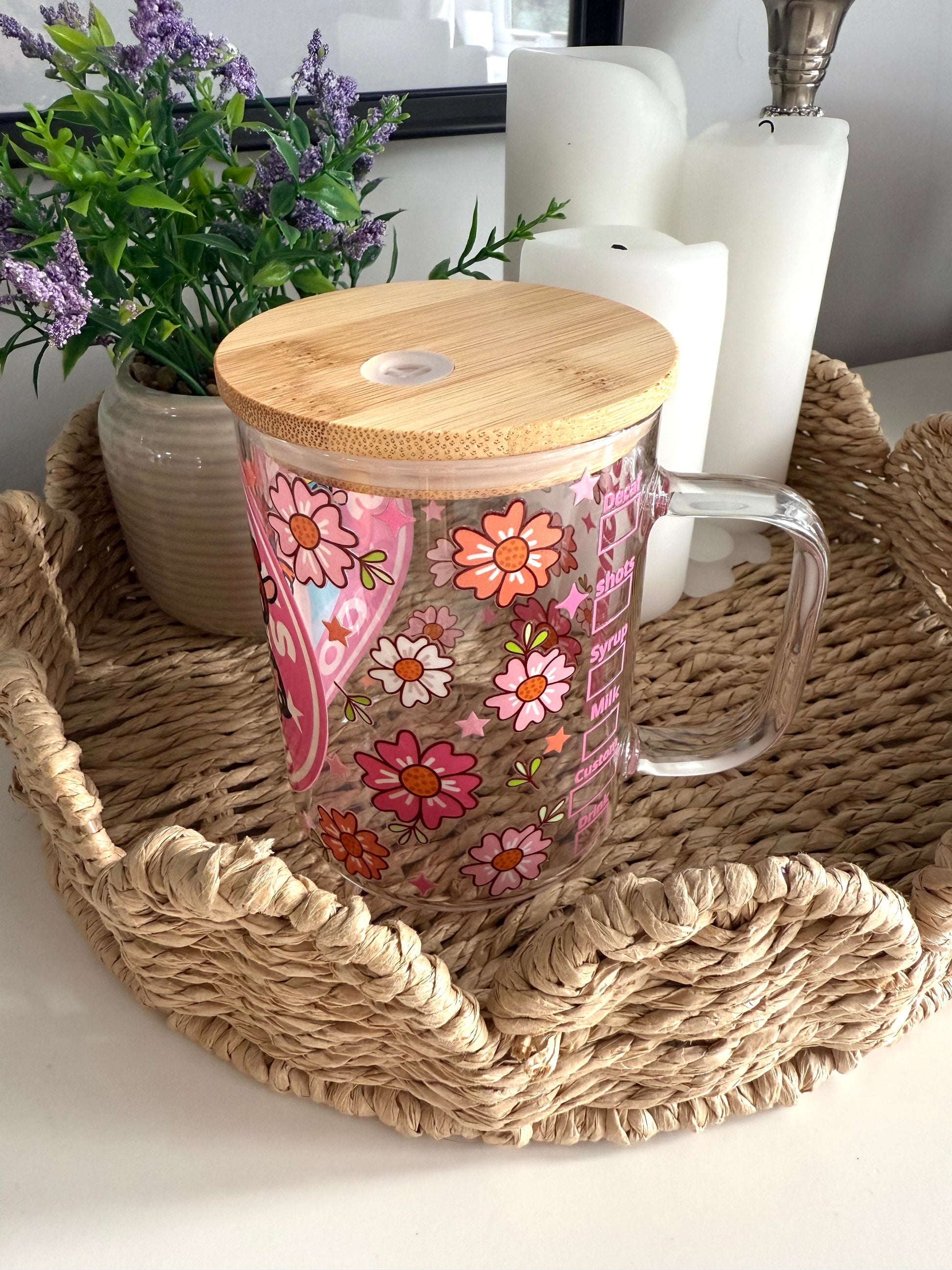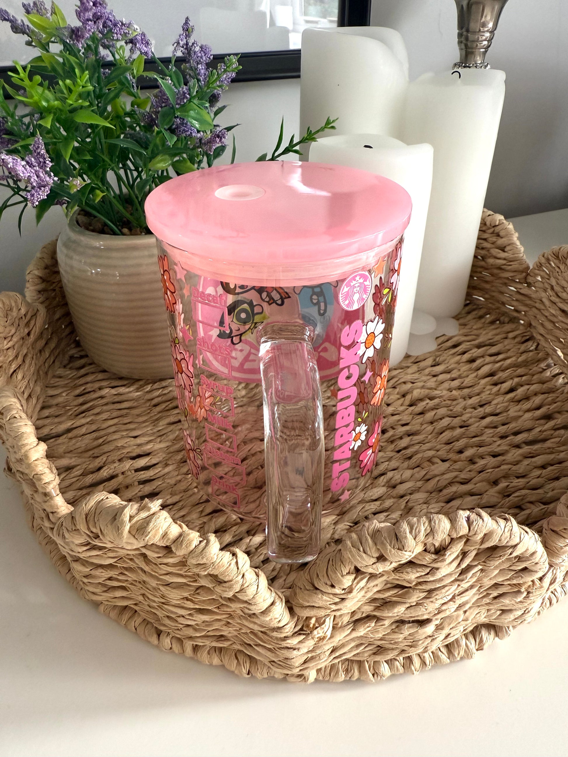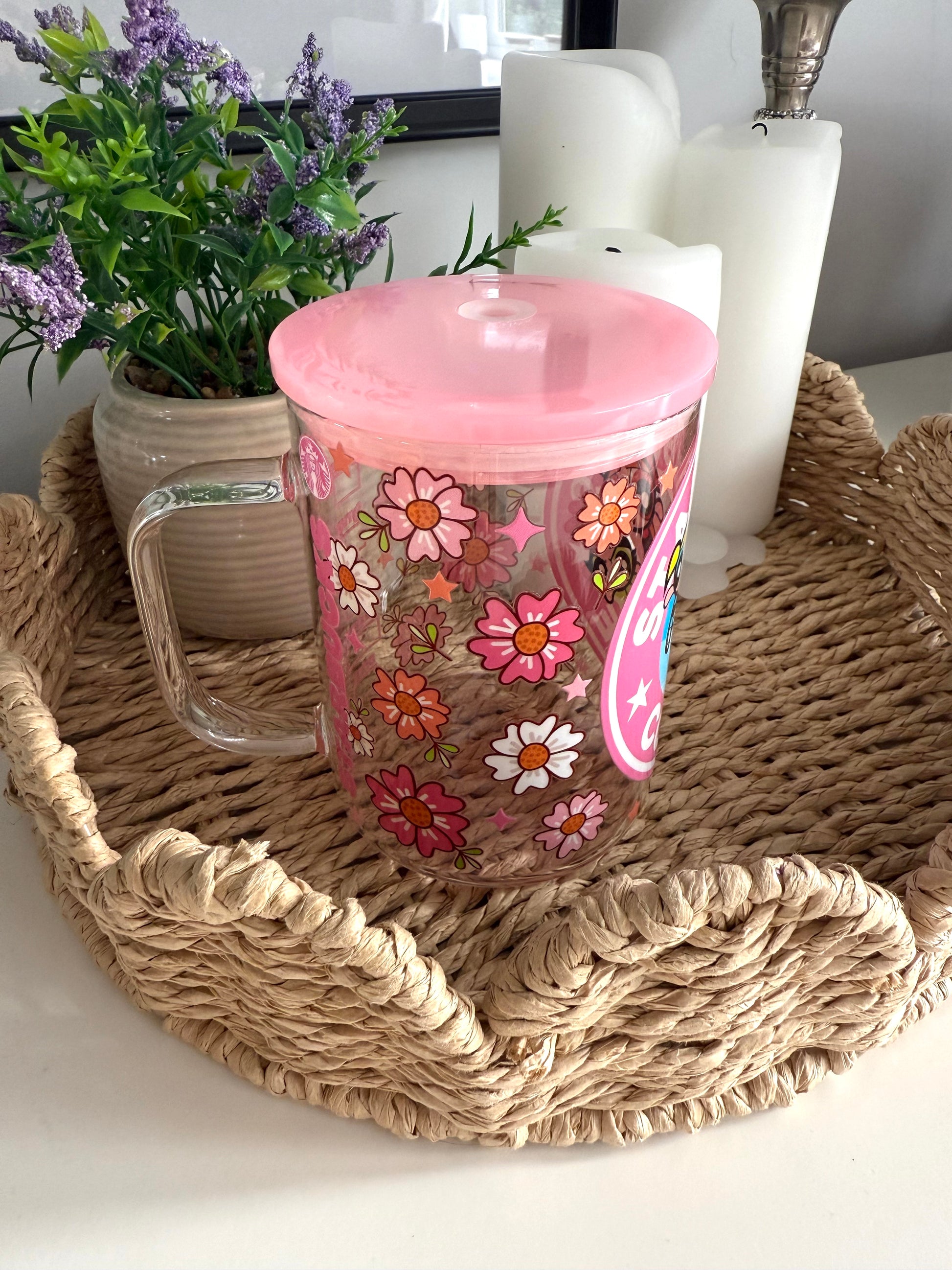 The Powerpuff Girls glass mug is a fun and nostalgic throwback, featuring Blossom, Bubbles, and Buttercup inside a bold pink coffee shop logo design. Perfect for enjoying your favorite drinks while adding a splash of cartoon magic to your day.
