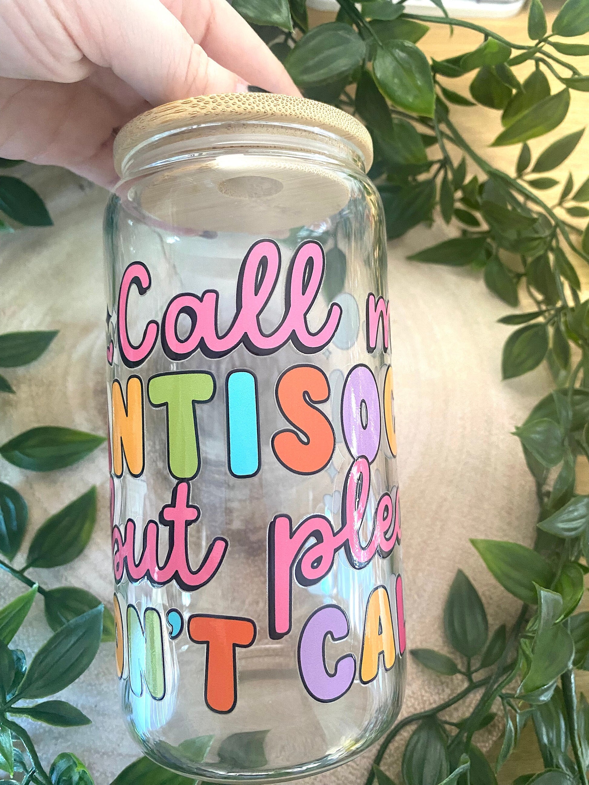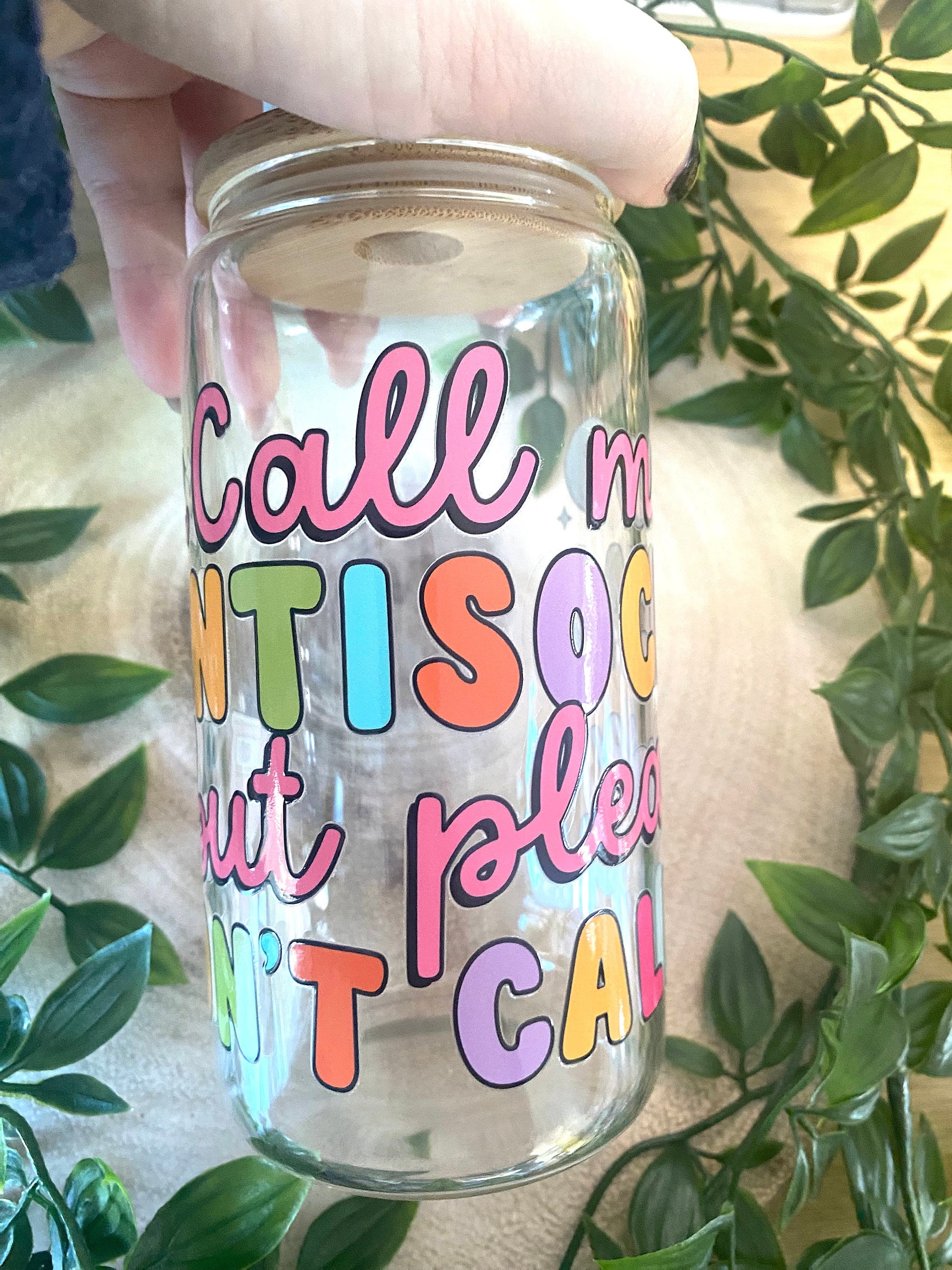 The Call Me Antisocial glass cup is bold, colourful, and unapologetic, featuring a playful multicoloured slogan that’s perfect for making a statement while you sip. Ideal for those who embrace their introvert side with humour.