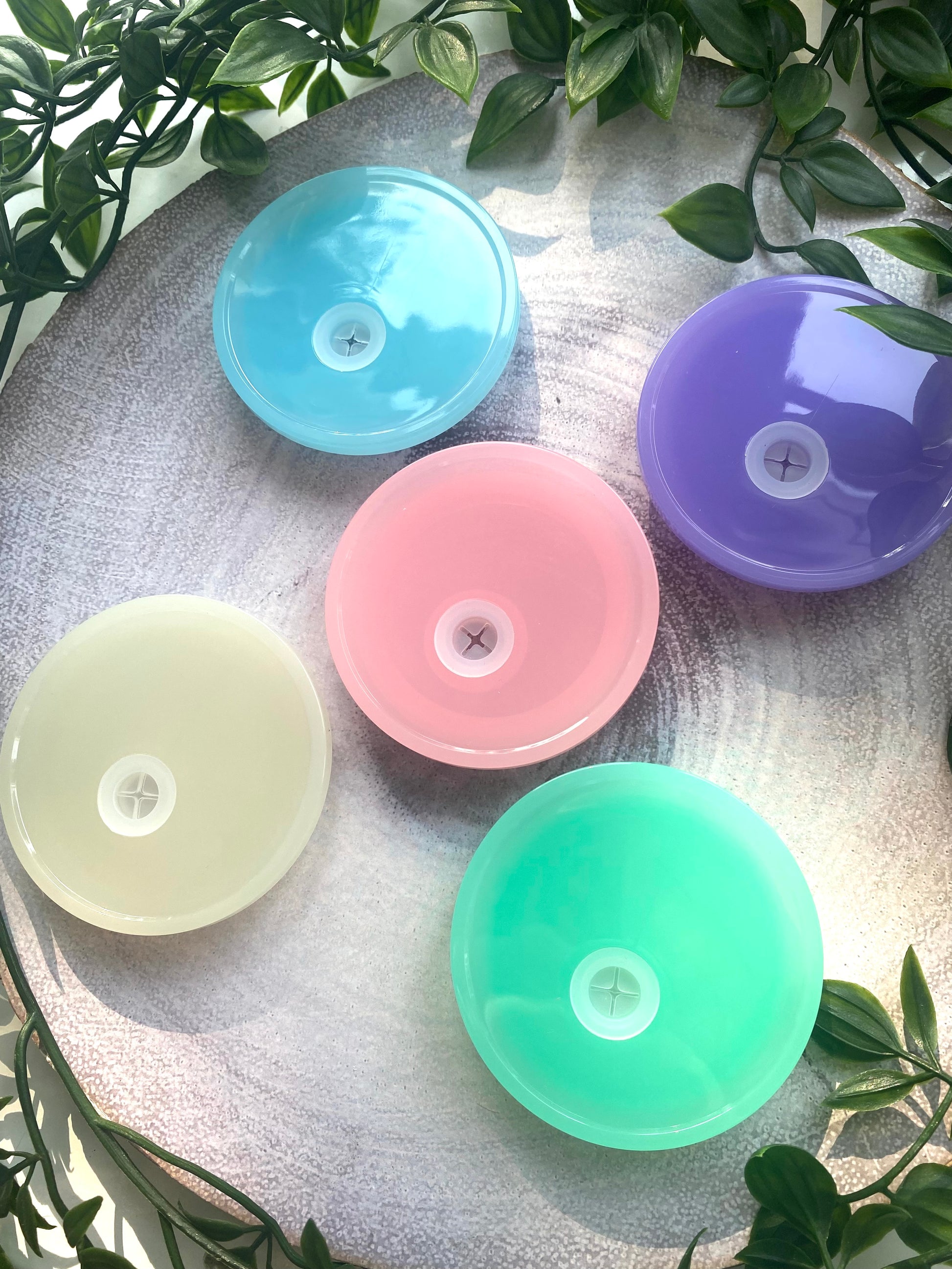 Add a pop of colour and practicality to your glass can cups with these Reusable Lids. Designed to fit snugly on standard glass cans, they keep your drinks fresh, prevent spills, and make sipping on the go a breeze. Available in five cheerful colors — blue, purple, pink, cream, and mint — so you can mix, match, and style your cup to suit your mood.