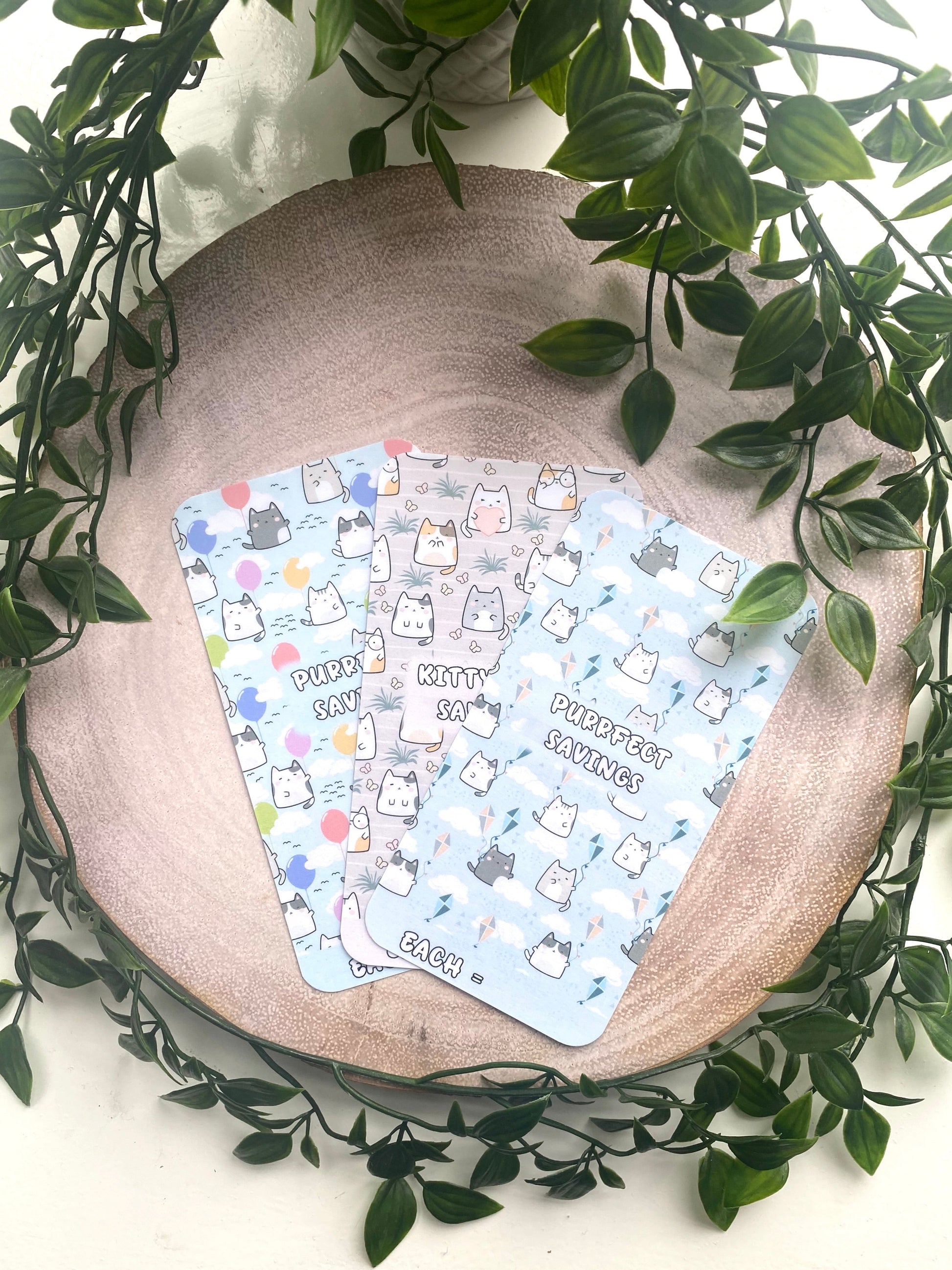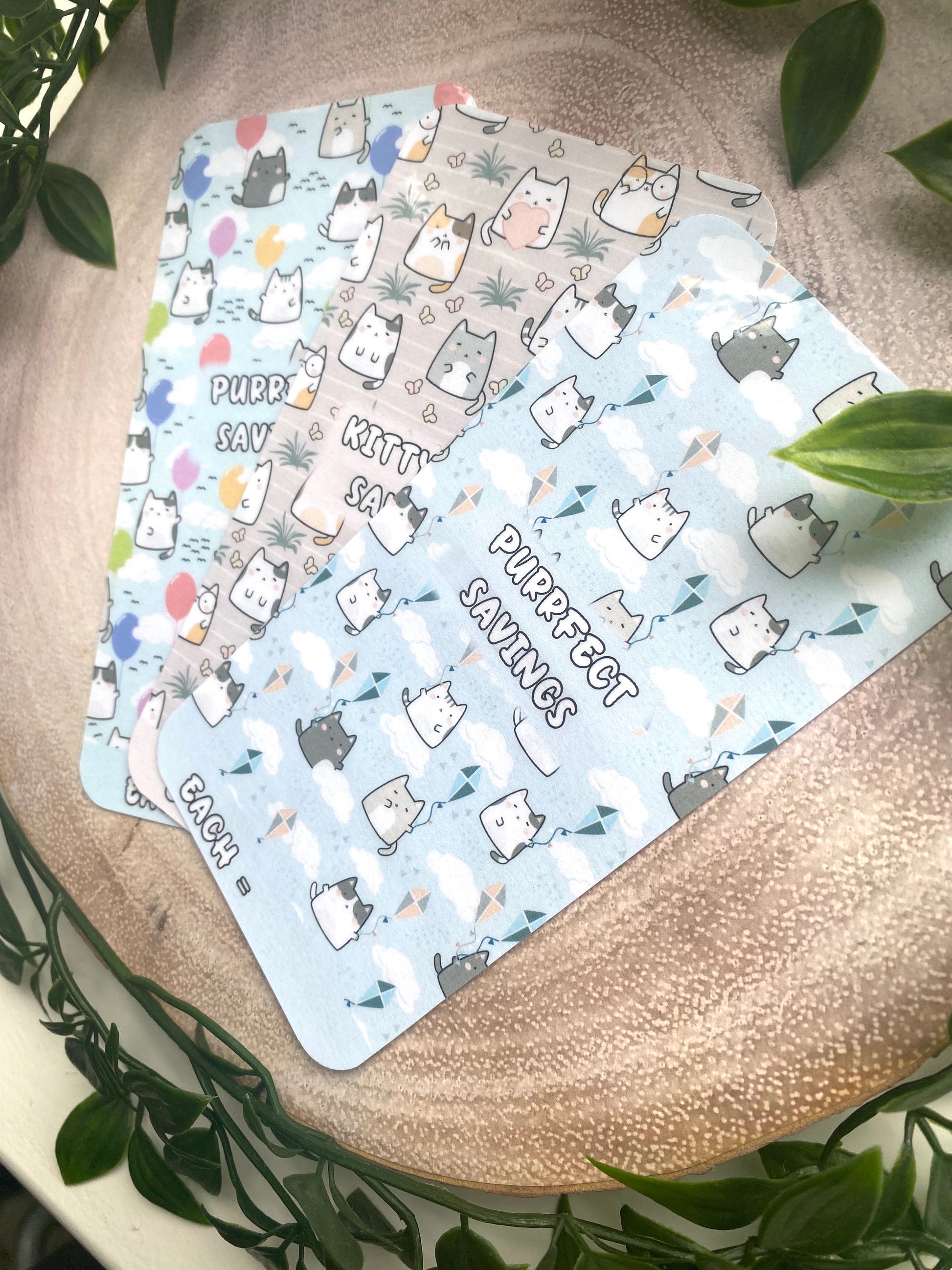 Each card features adorable cat illustrations in different cute themes, making budgeting feel lighthearted and motivating. Simply decide how much each kitty is worth and fill in as or cross off as you go!