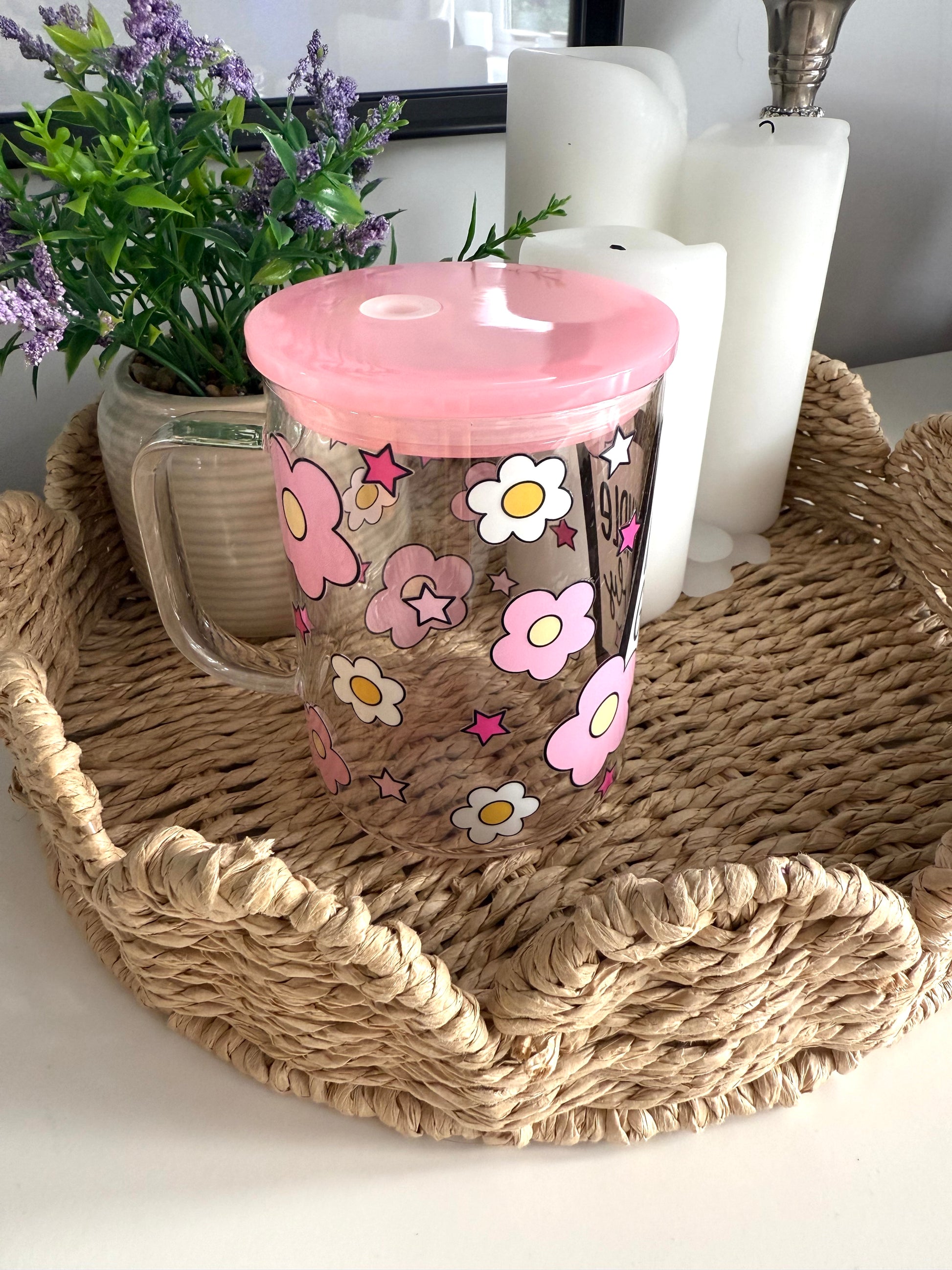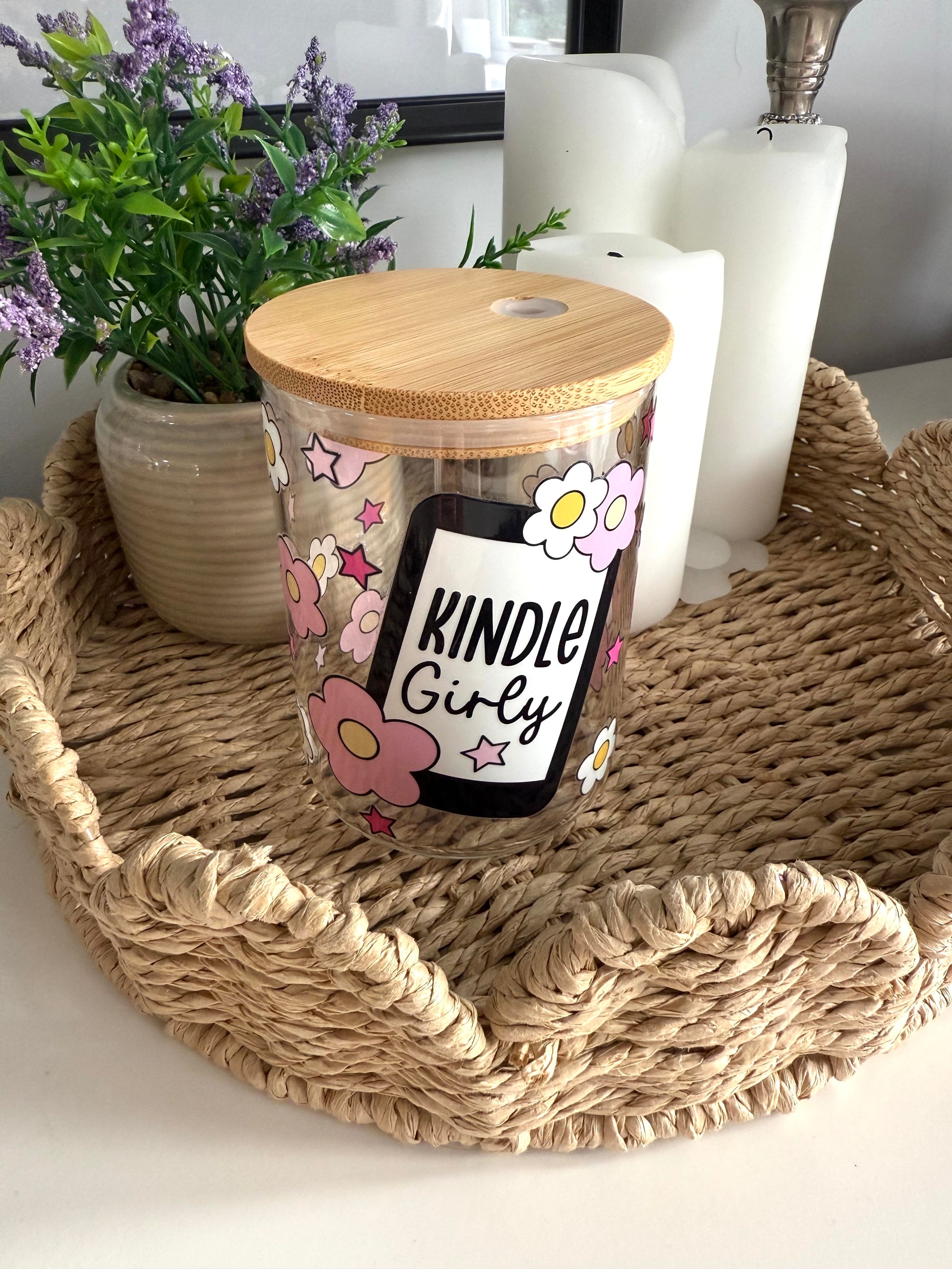 The Kindle Girly Glass Mug is the ultimate companion for cozy reading sessions, featuring a charming e-reader design surrounded by soft pink and yellow flowers. Perfect for keeping your favorite drinks close while you escape into a good book.