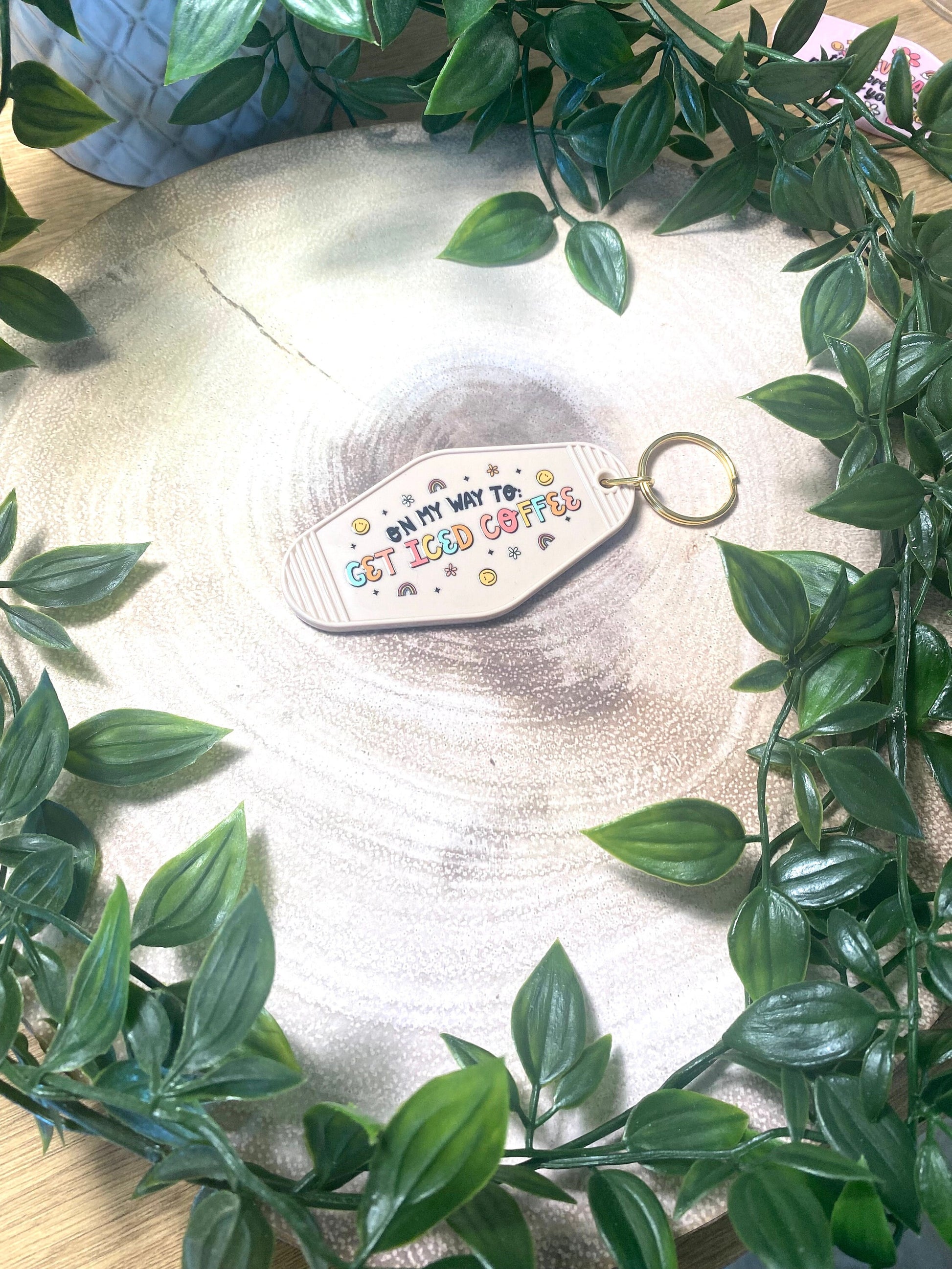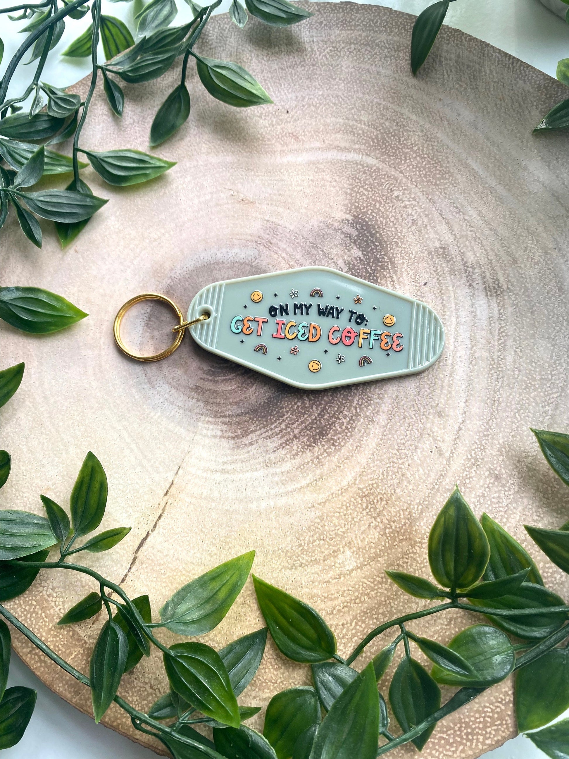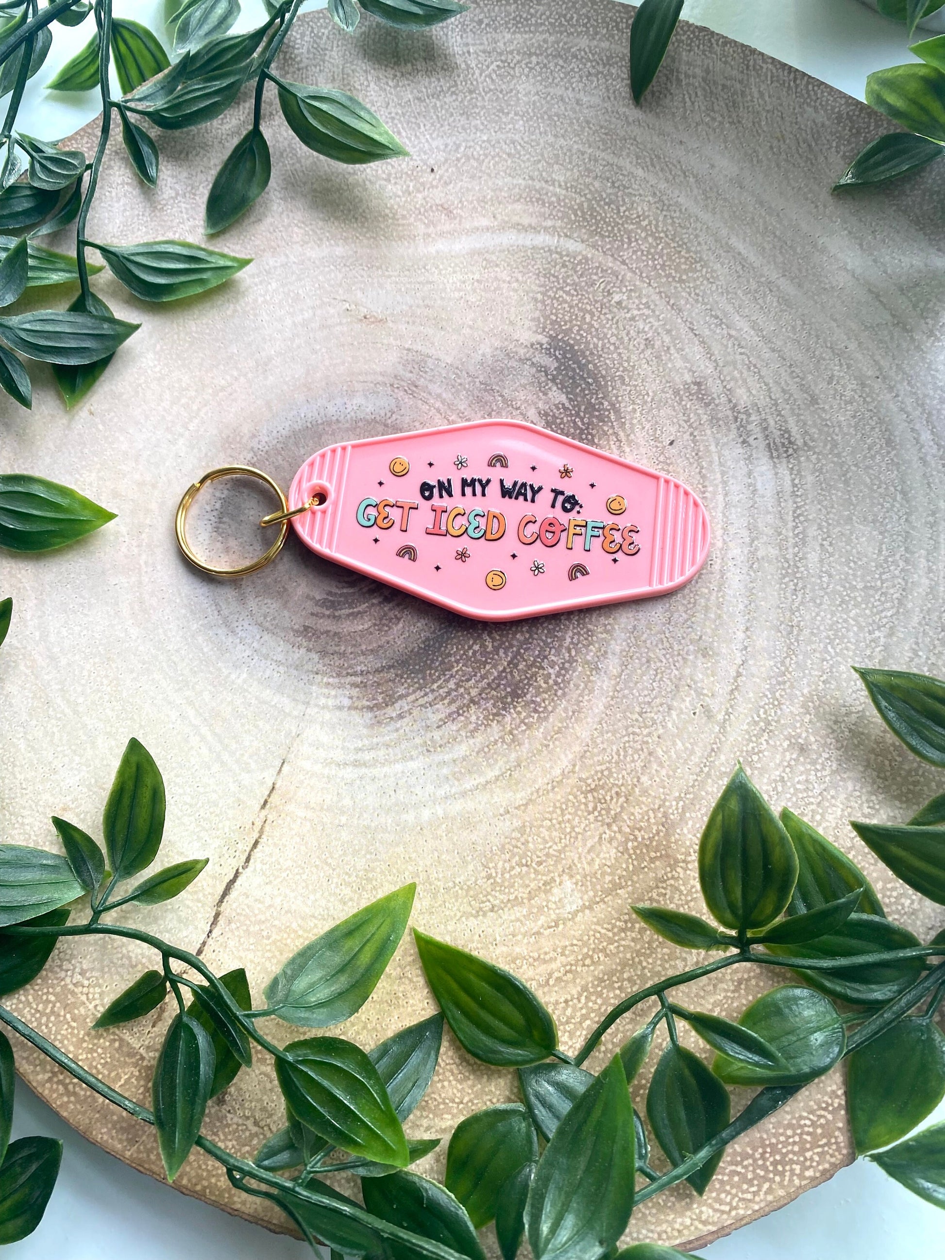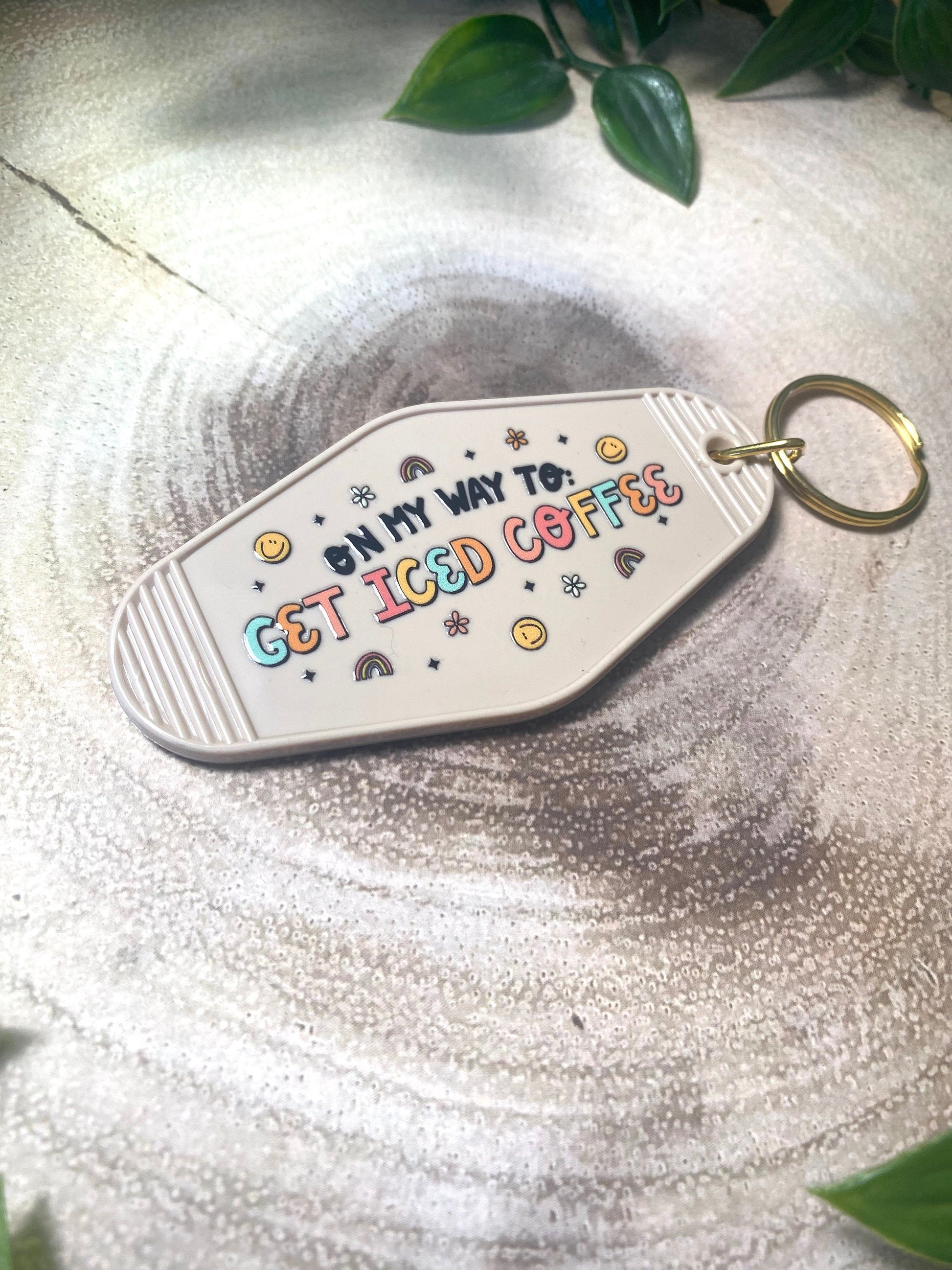 For the caffeine lovers who know that iced coffee isn’t just a drink — it’s a lifestyle. This On My Way to Iced Coffee retro motel-style keyring features playful pastel lettering with smiley faces, stars, and rainbows to keep your vibe bright while you’re on your coffee run.