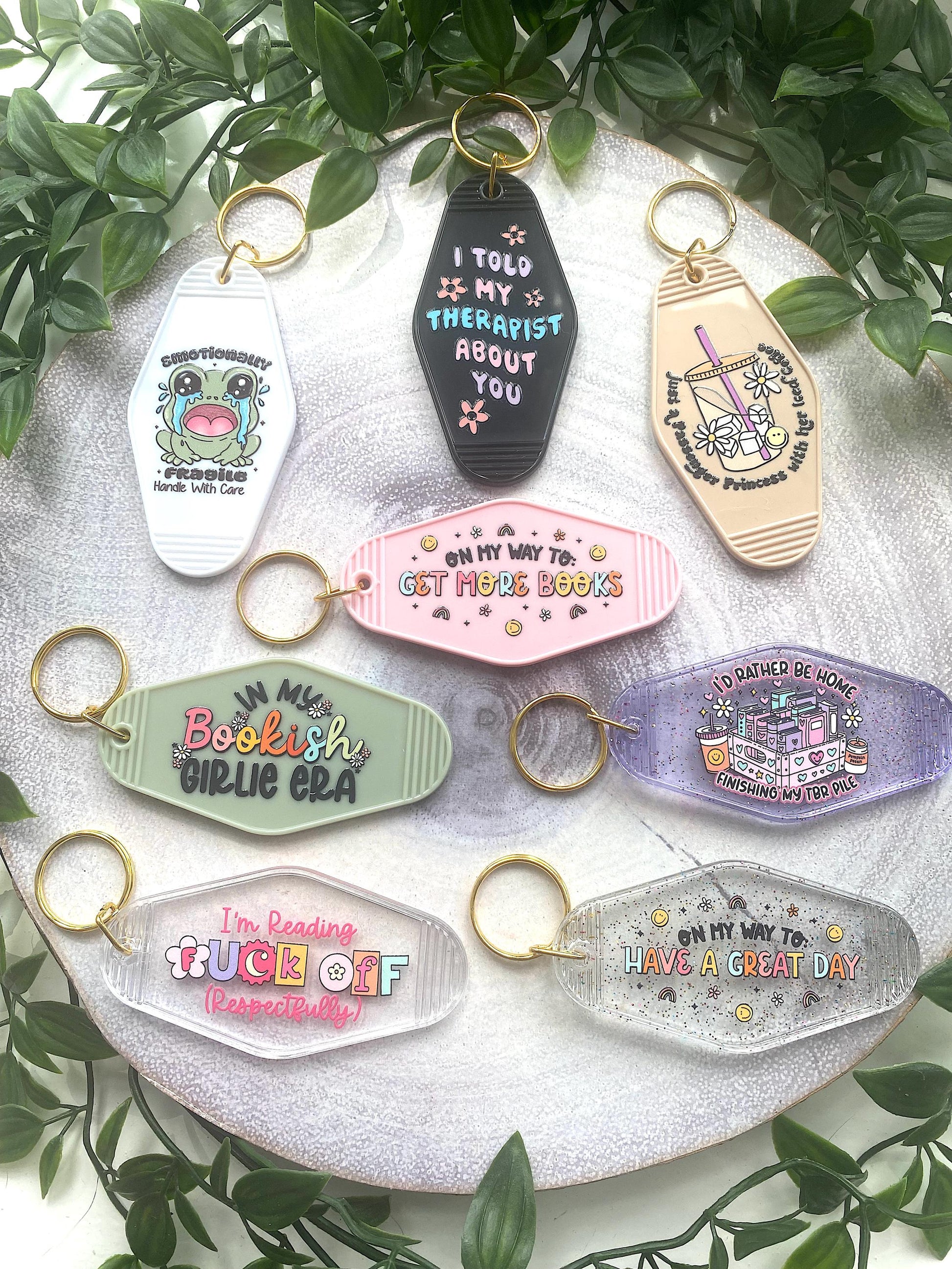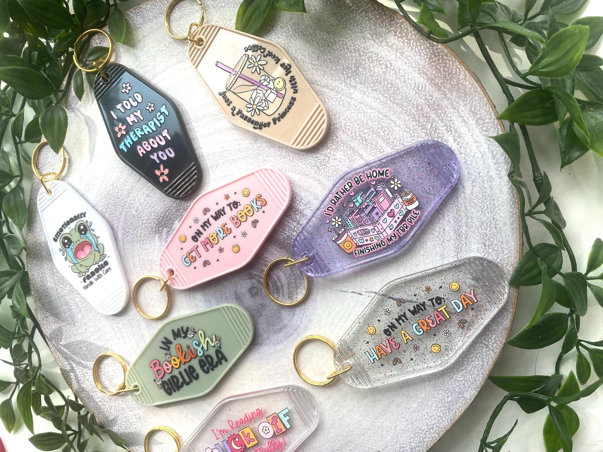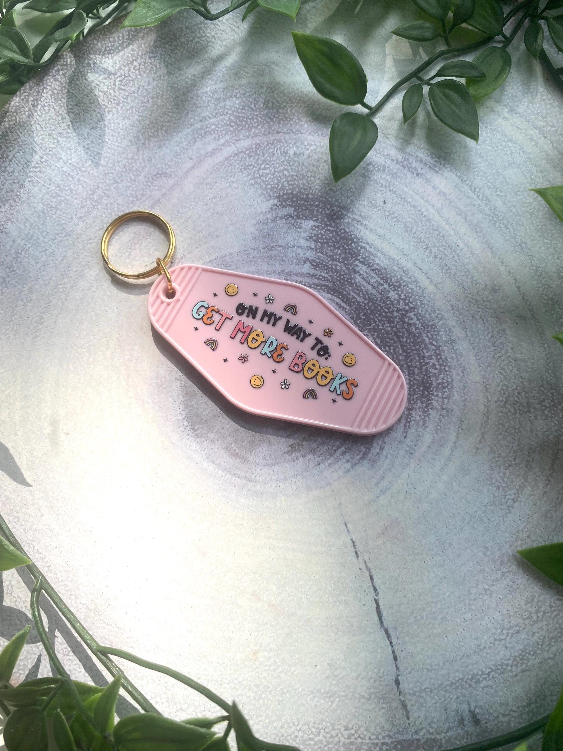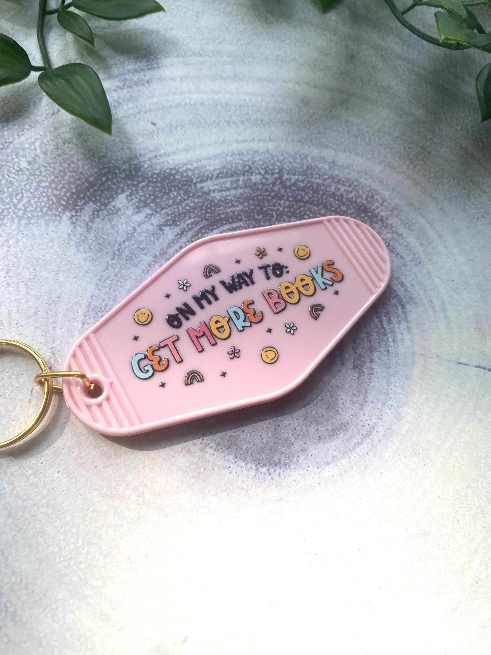 For the book lovers whose TBR pile is never big enough — this On My Way to Get More Books retro motel-style keyring is your perfect reading companion. With cheerful pastel lettering, smiley faces, and stars, it’s a cute way to declare your love for book shopping.