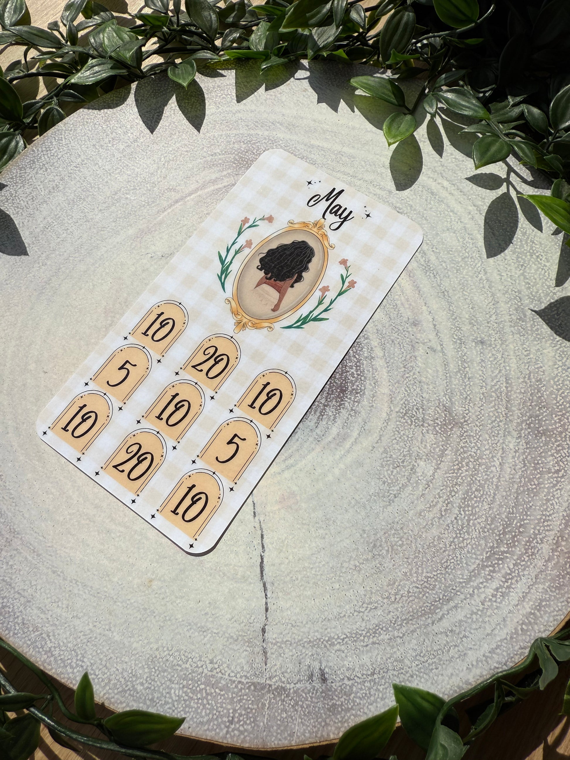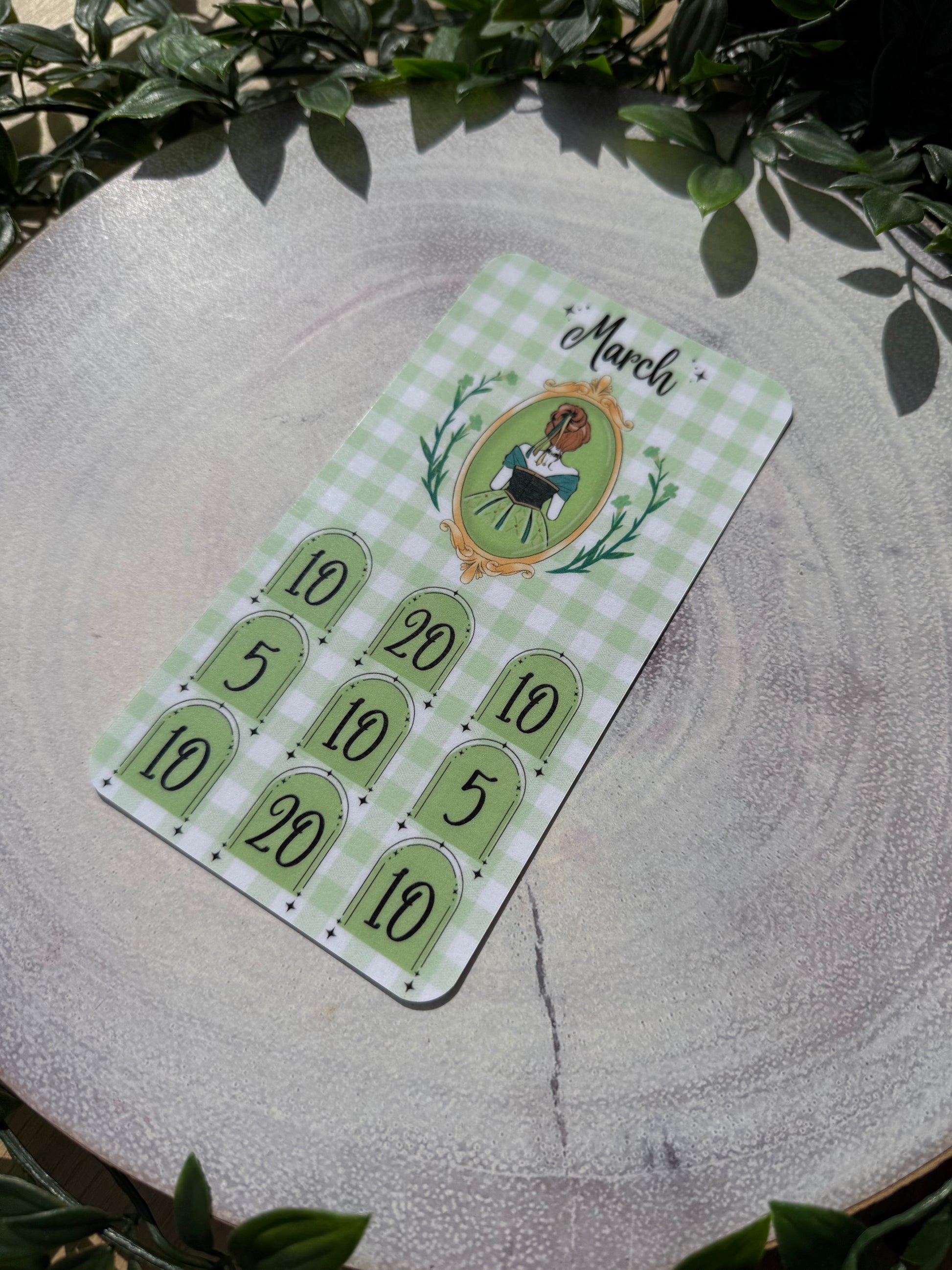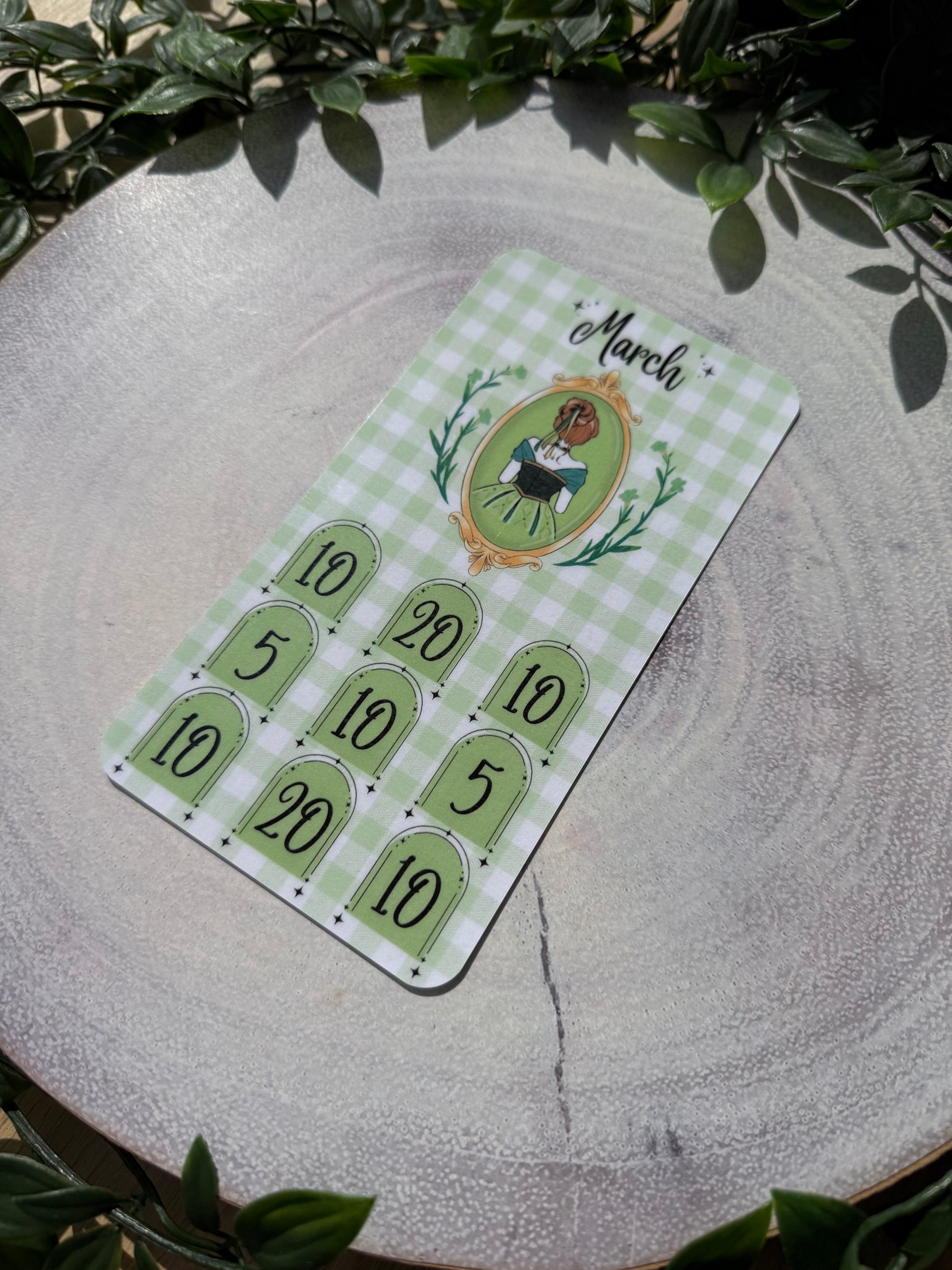 The Once Upon a Budget Collection includes 12 beautifully printed princess savings trackers, each designed on a pretty gingham background. With one princess for every month of the year, each tracker helps you save £100 — perfect for adding fun and motivation to your savings journey.