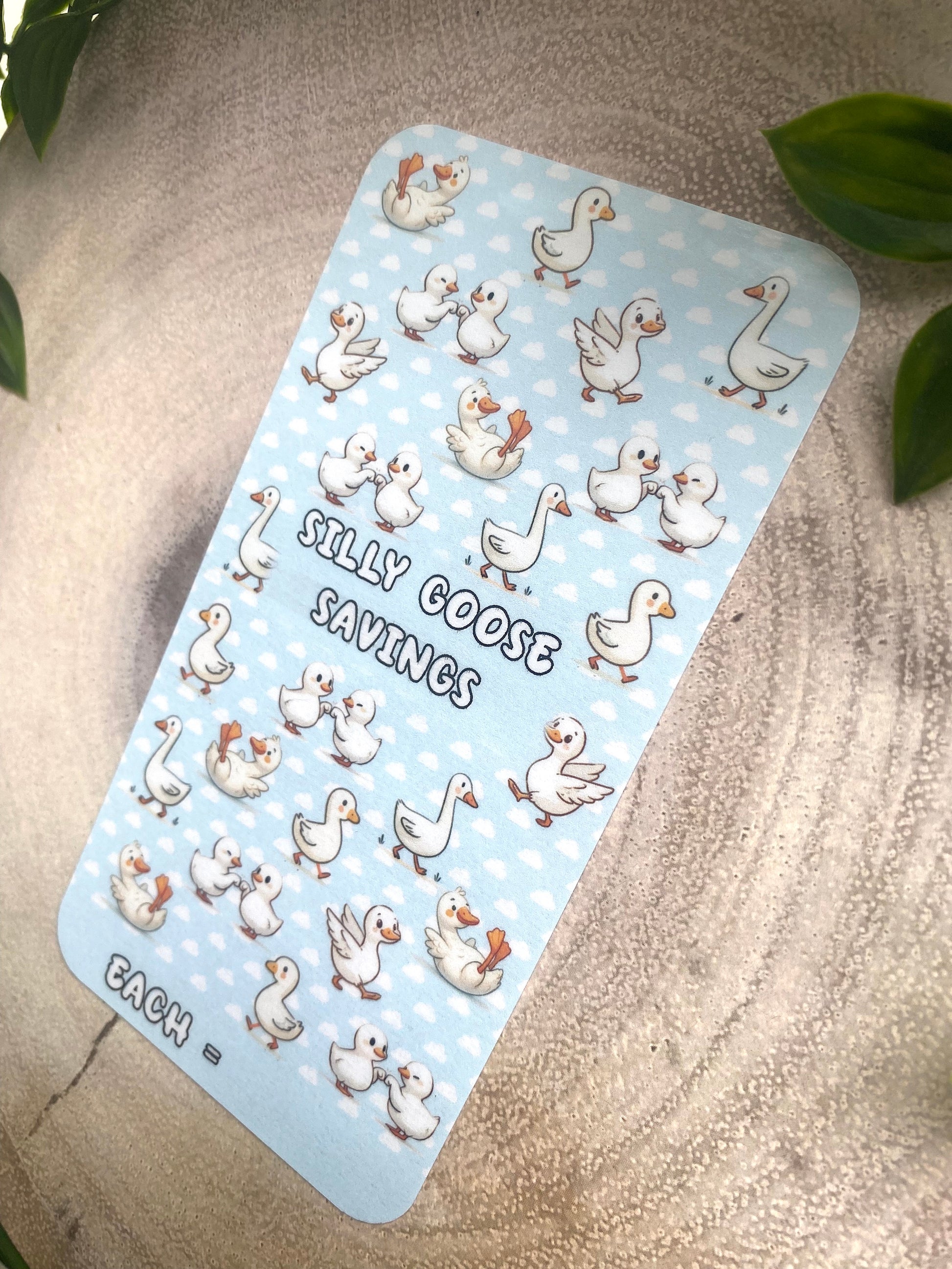 Covered in quirky geese, these cards bring humor and charm to your savings journey. Choose the value for each goose, track your progress, and enjoy watching your nest egg grow—one silly goose at a time.