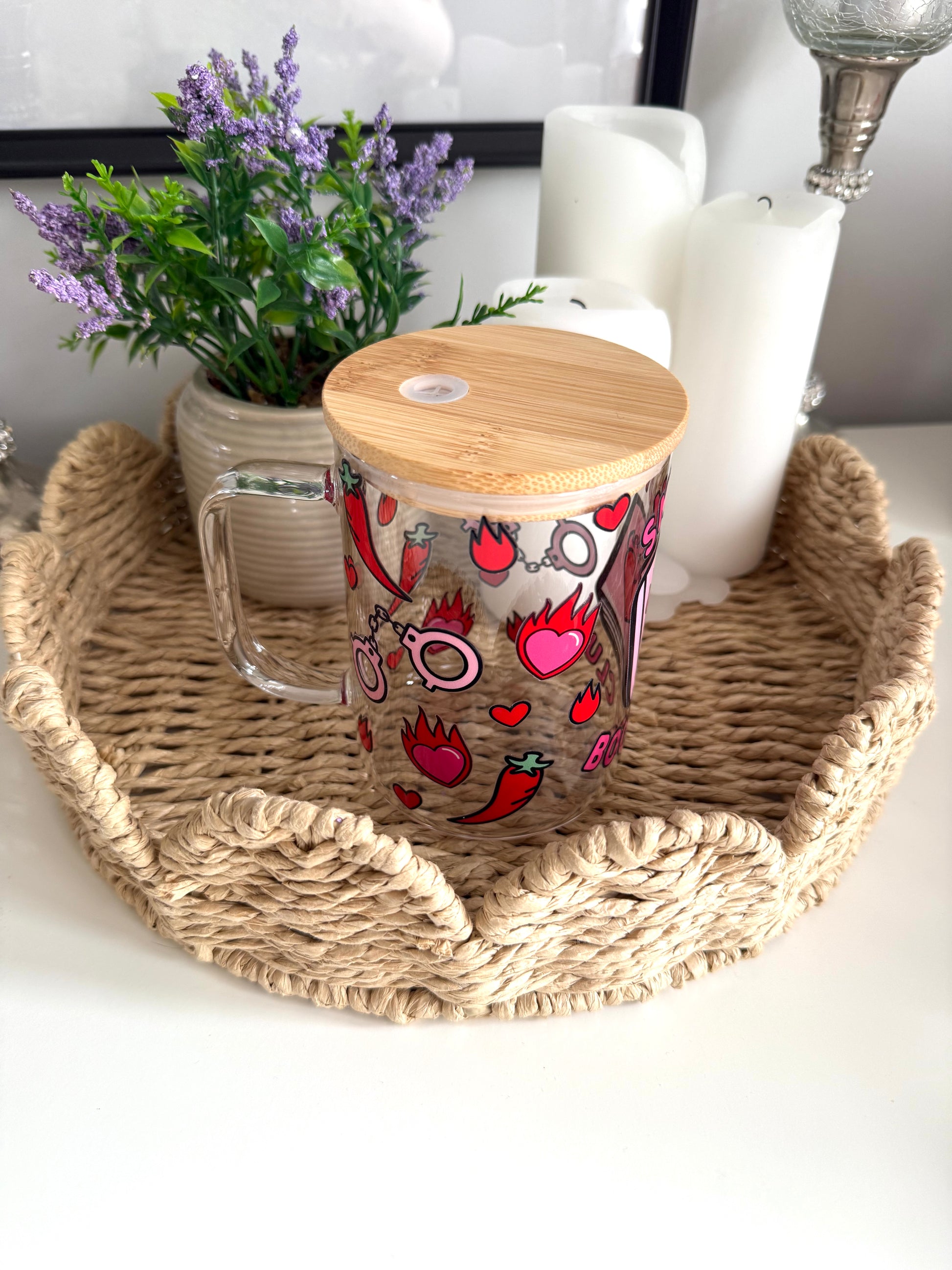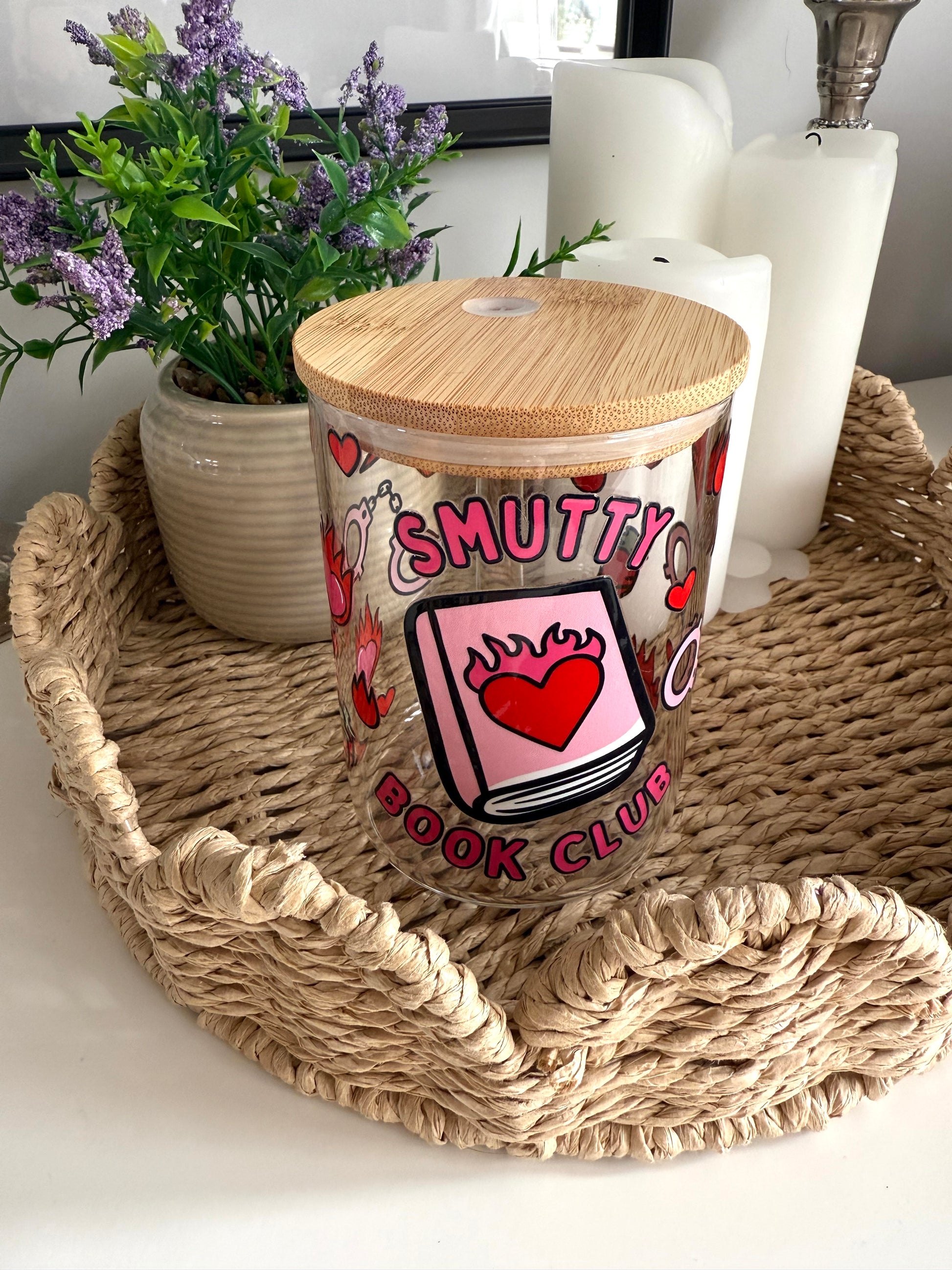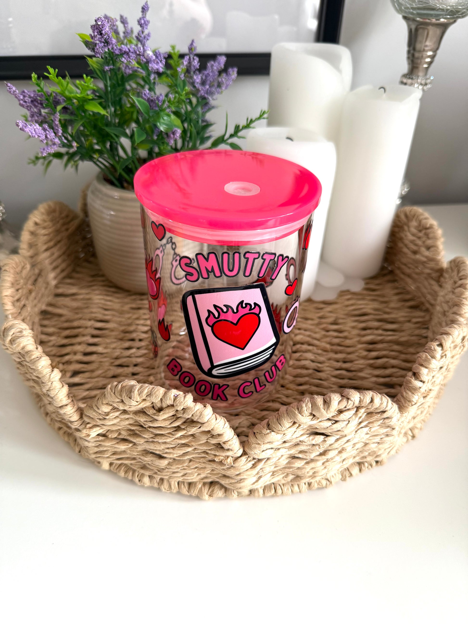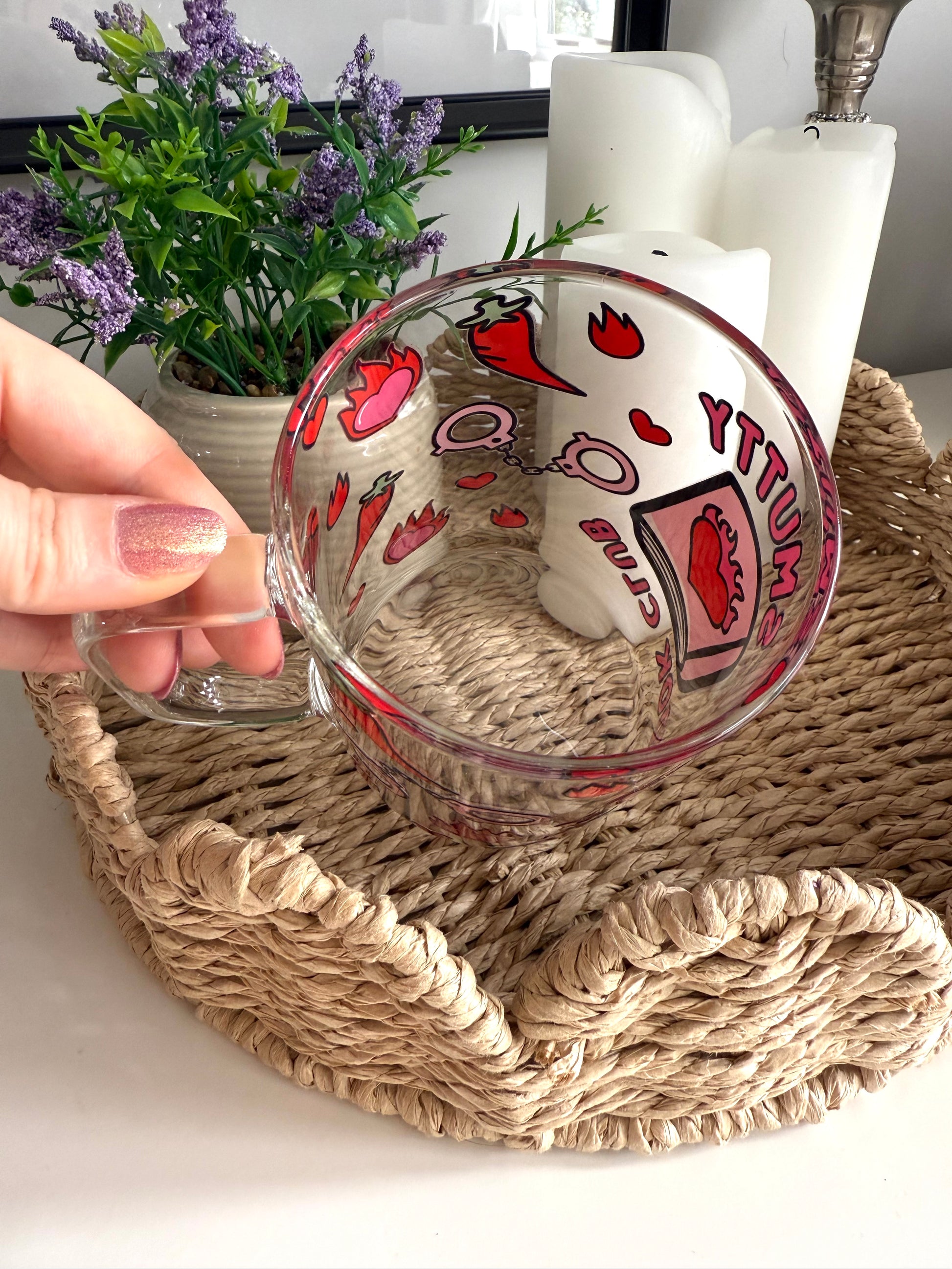 The Smutty Book Club Glass Mug is the perfect cheeky companion for your reading sessions, blending bold, playful design with bookish charm. Featuring a pink-hued book and heart graphic surrounded by fun details, it’s ideal for adding a flirty twist to your daily drinks.