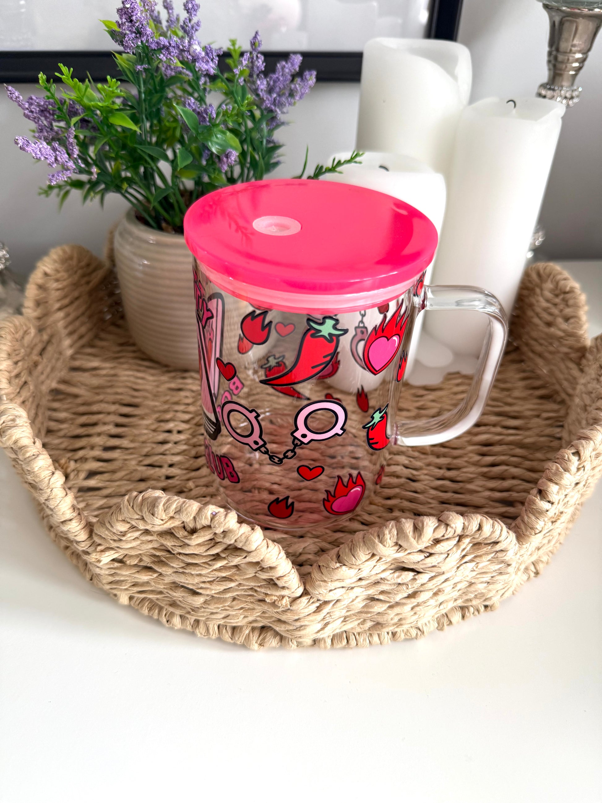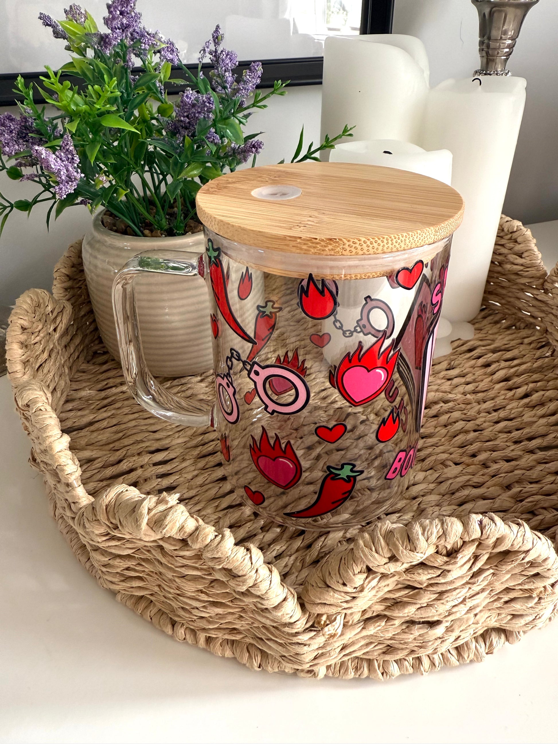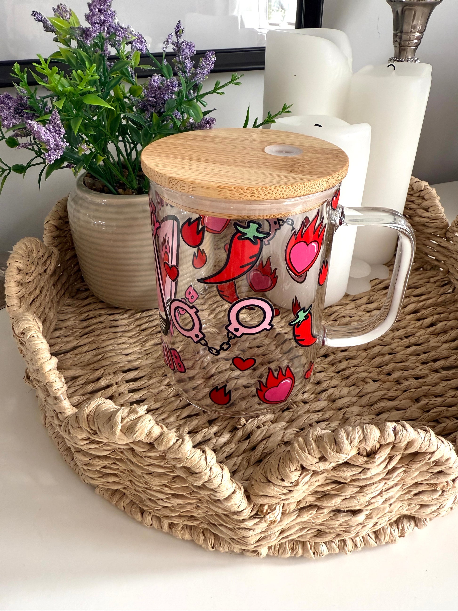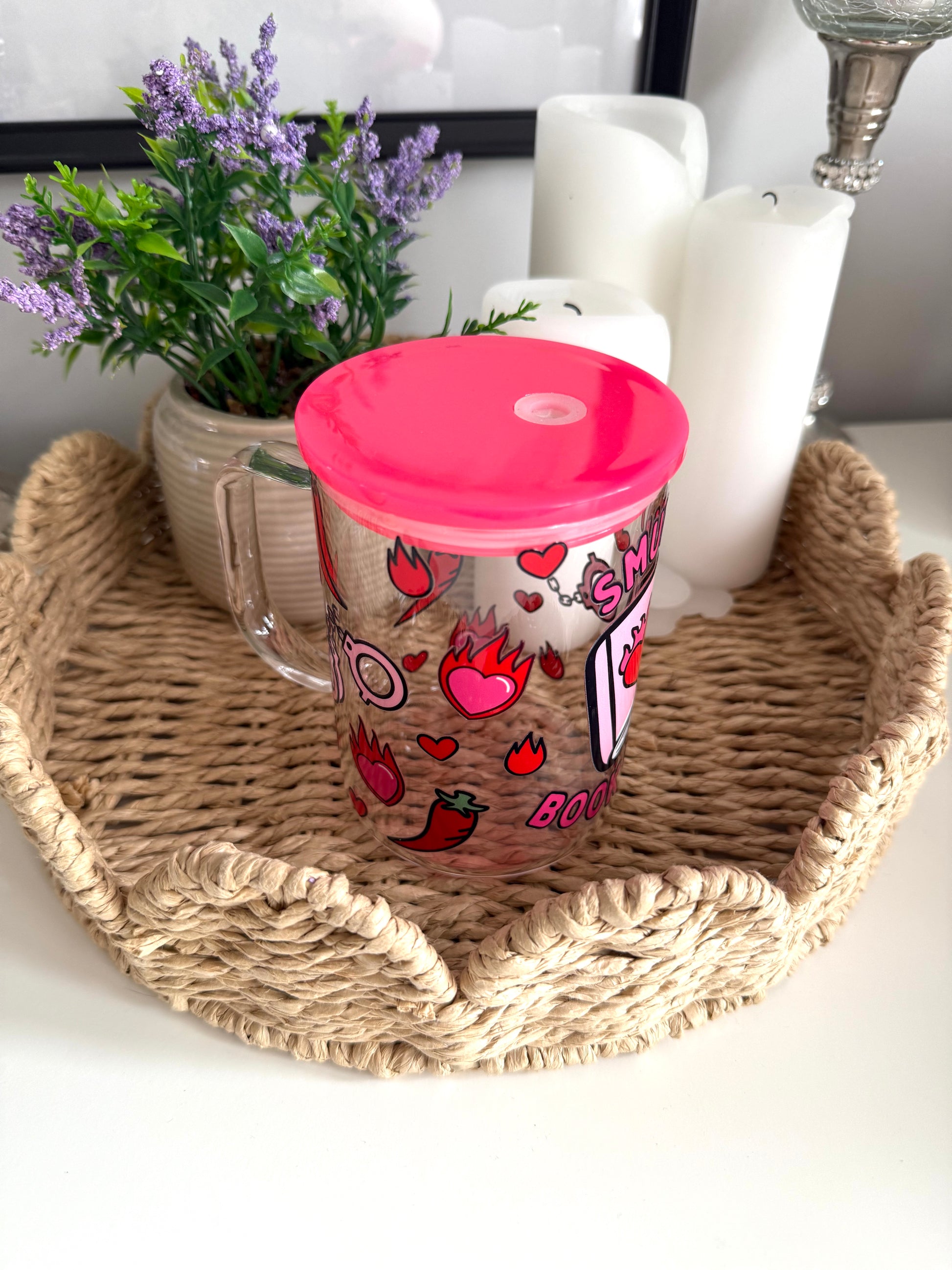 The Smutty Book Club Glass Mug is the perfect cheeky companion for your reading sessions, blending bold, playful design with bookish charm. Featuring a pink-hued book and heart graphic surrounded by fun details, it’s ideal for adding a flirty twist to your daily drinks.