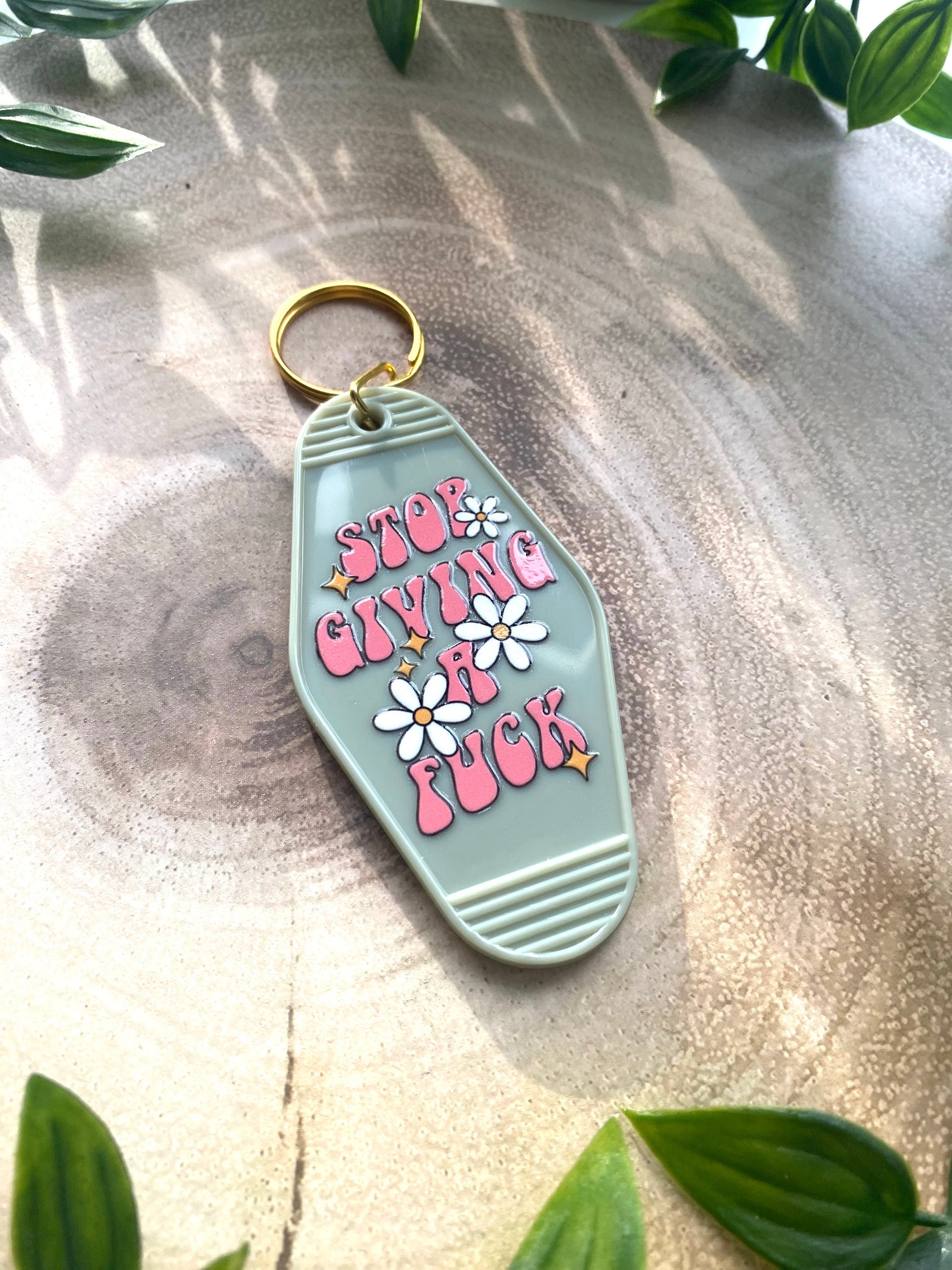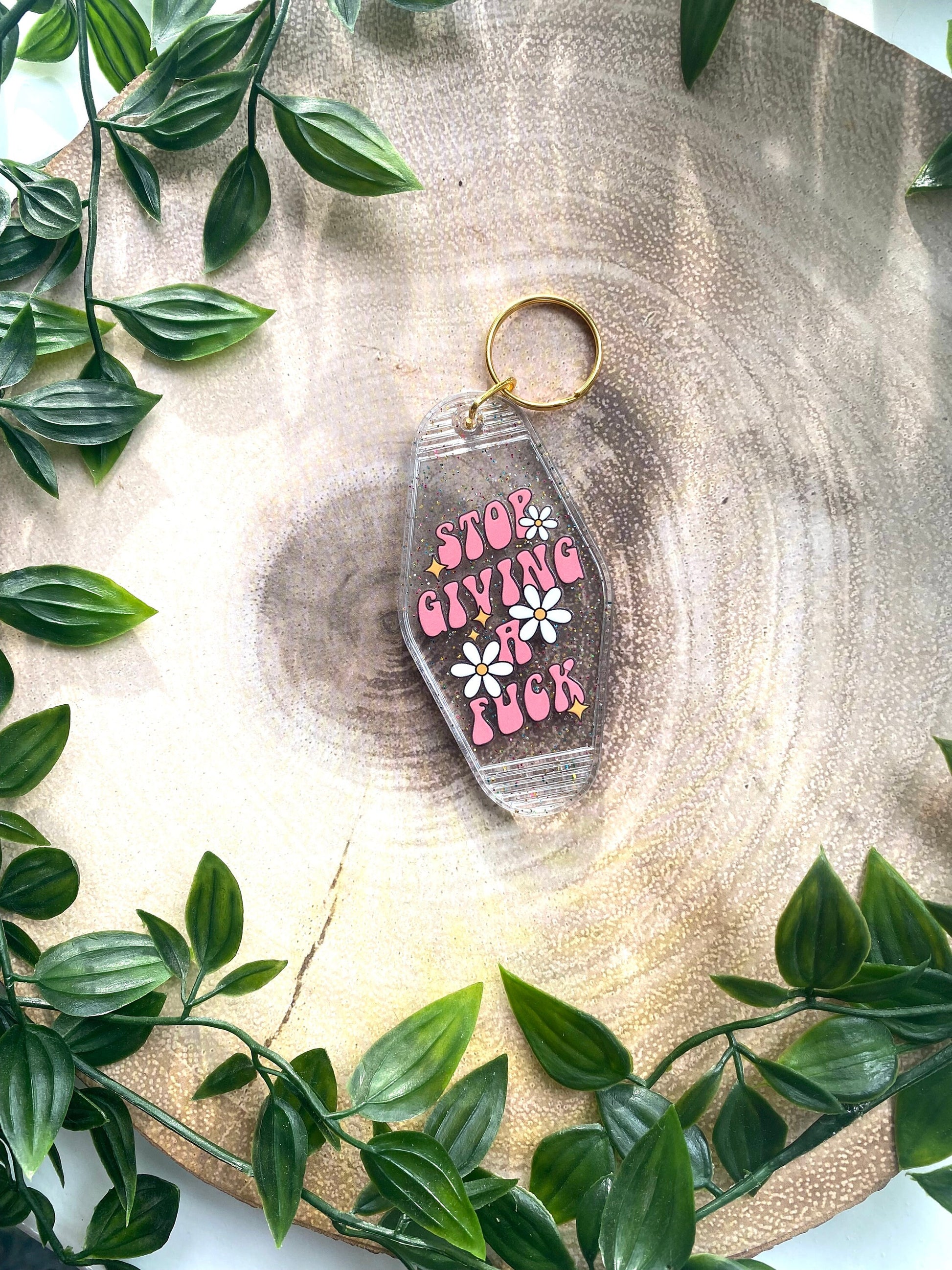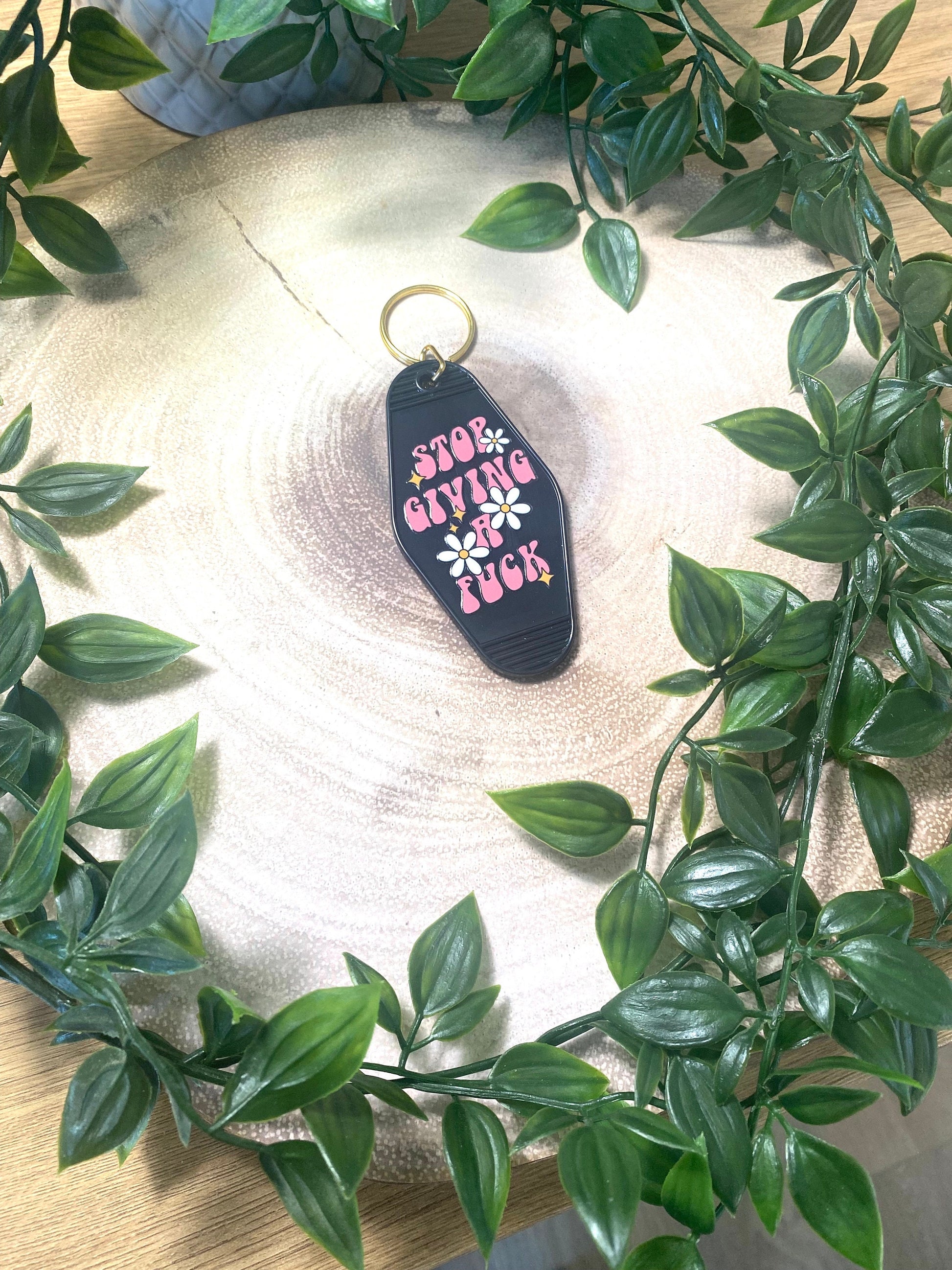 Bold, sassy, and unapologetic — this Stop Giving a F*** retro motel-style keyring is your daily reminder to live life on your own terms.