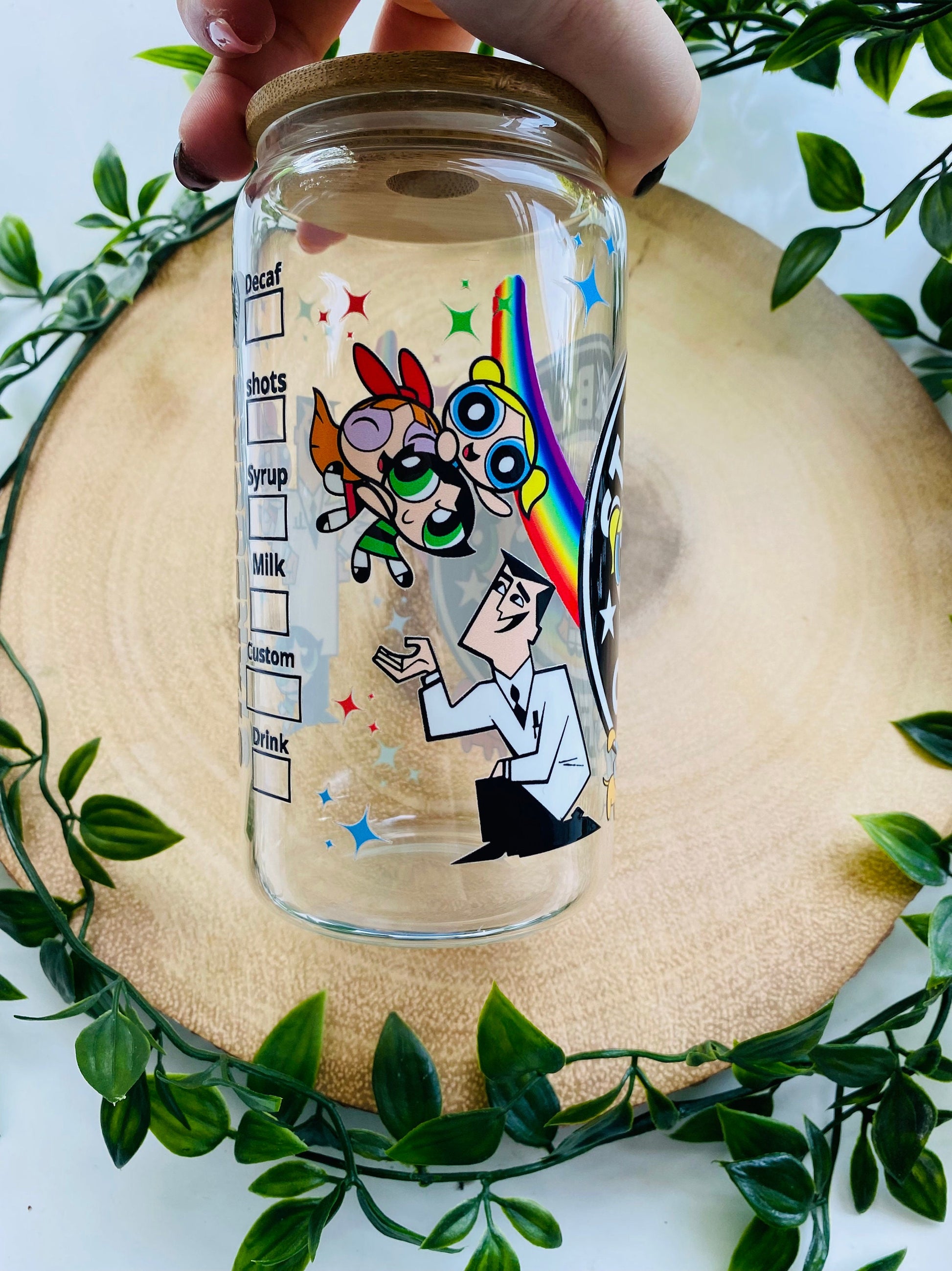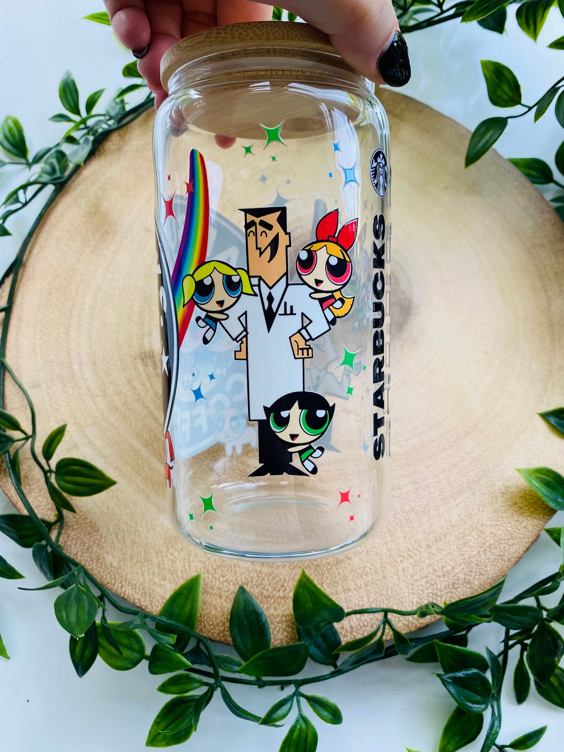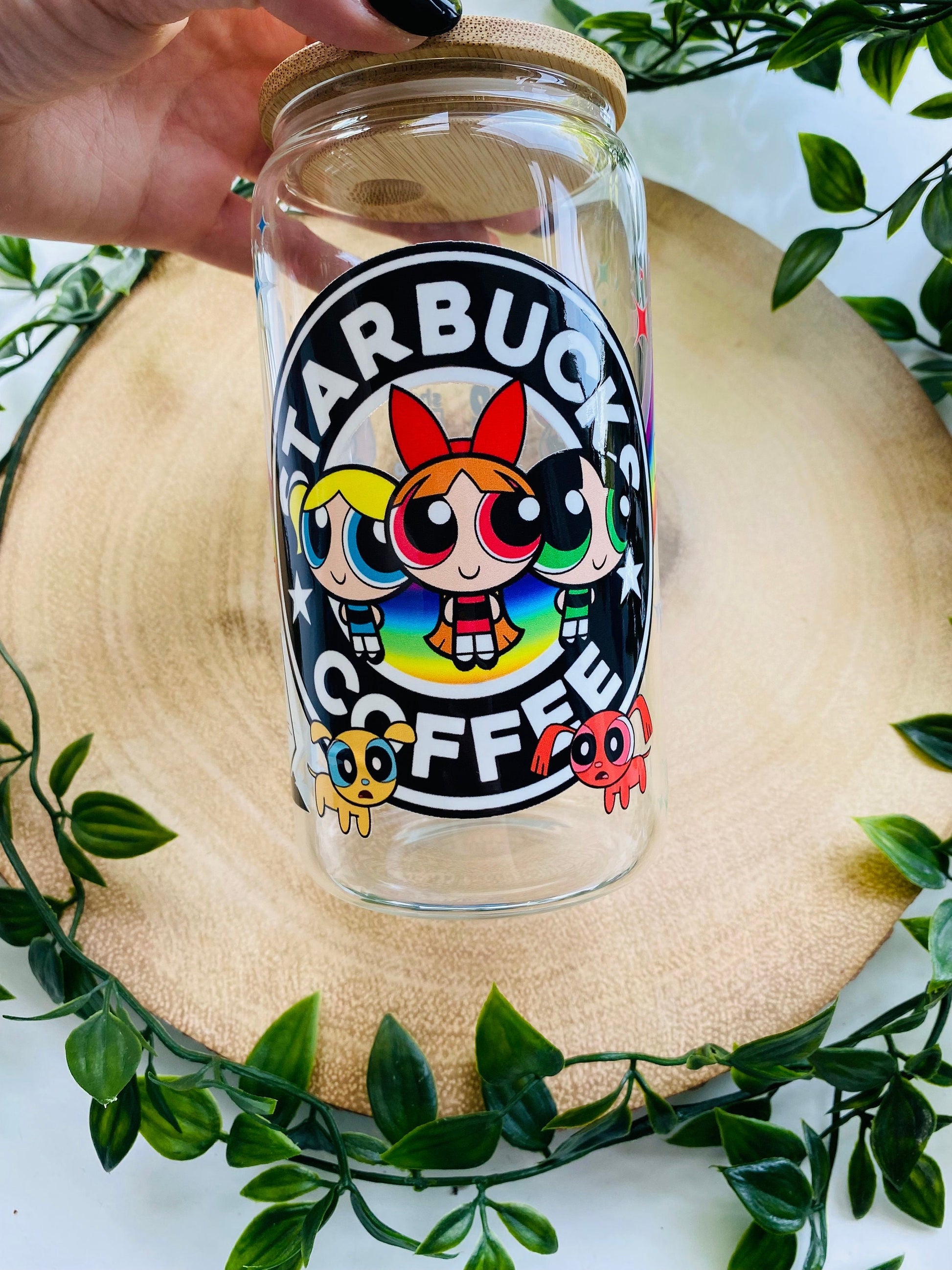 The Rainbow Powerpuff Girls Glass Cup brings together nostalgic cartoon charm and coffee shop vibes. Featuring Blossom, Bubbles, and Buttercup in bold, vibrant colours, this playful cup is perfect for adding a dash of fun to your daily drinks.