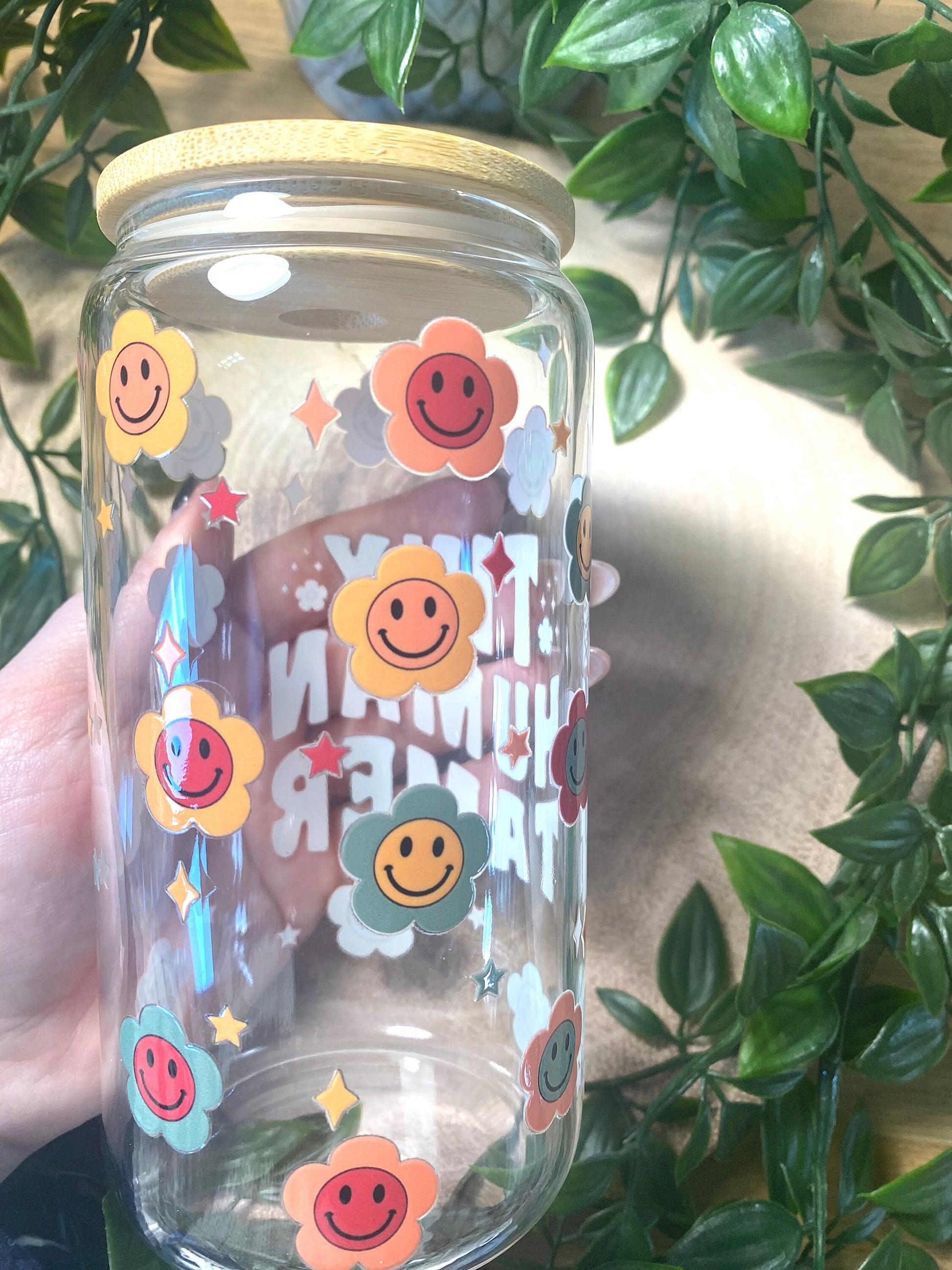 Perfect for teachers, parents, or anyone who wrangles little ones daily — this Tiny Human Tamer Glass adds humour and charm to any space. With bold, colourful retro lettering and smiley face accents, it’s a playful yet practical storage solution for snacks, treats, craft supplies, or desk essentials.
