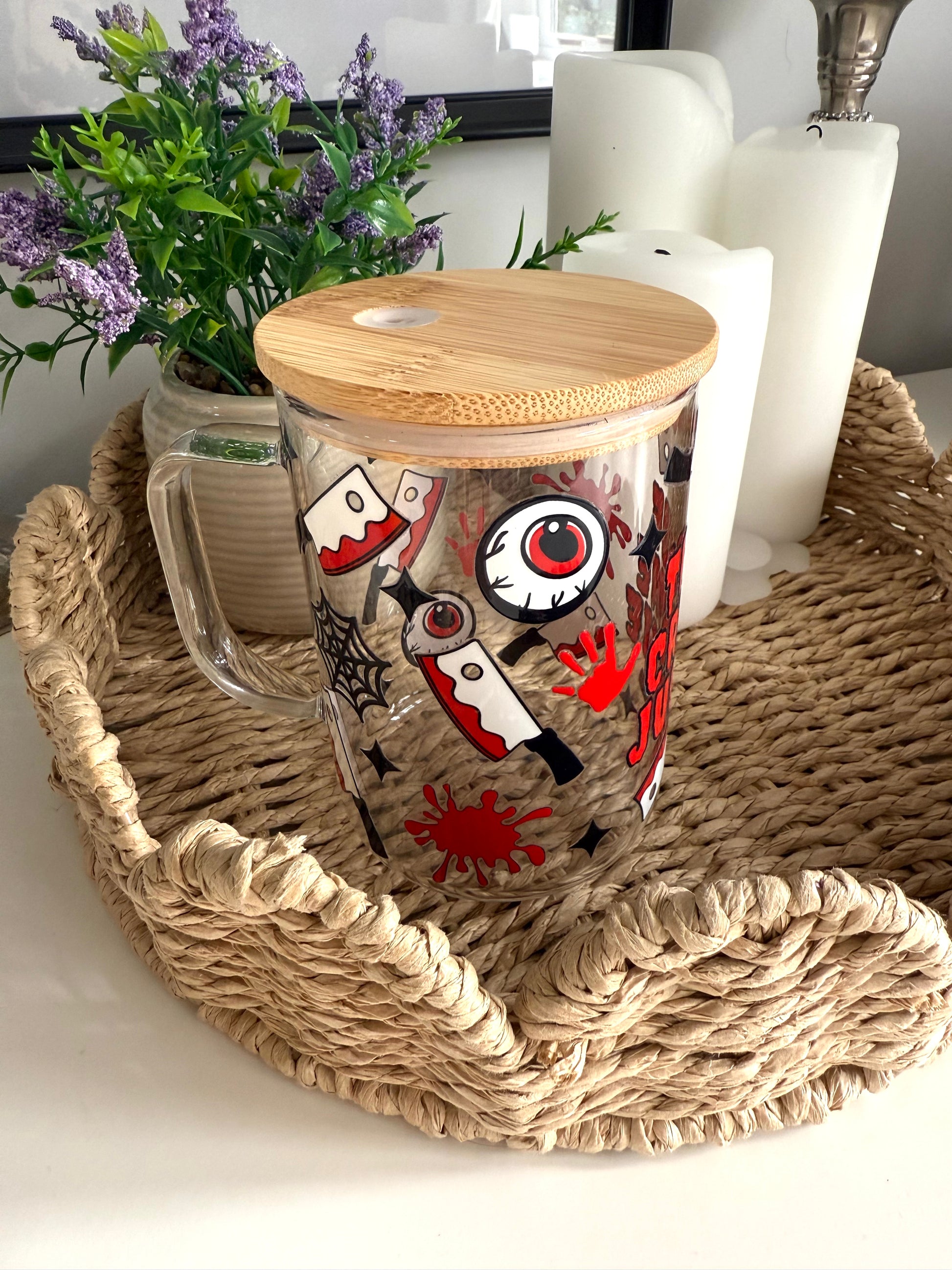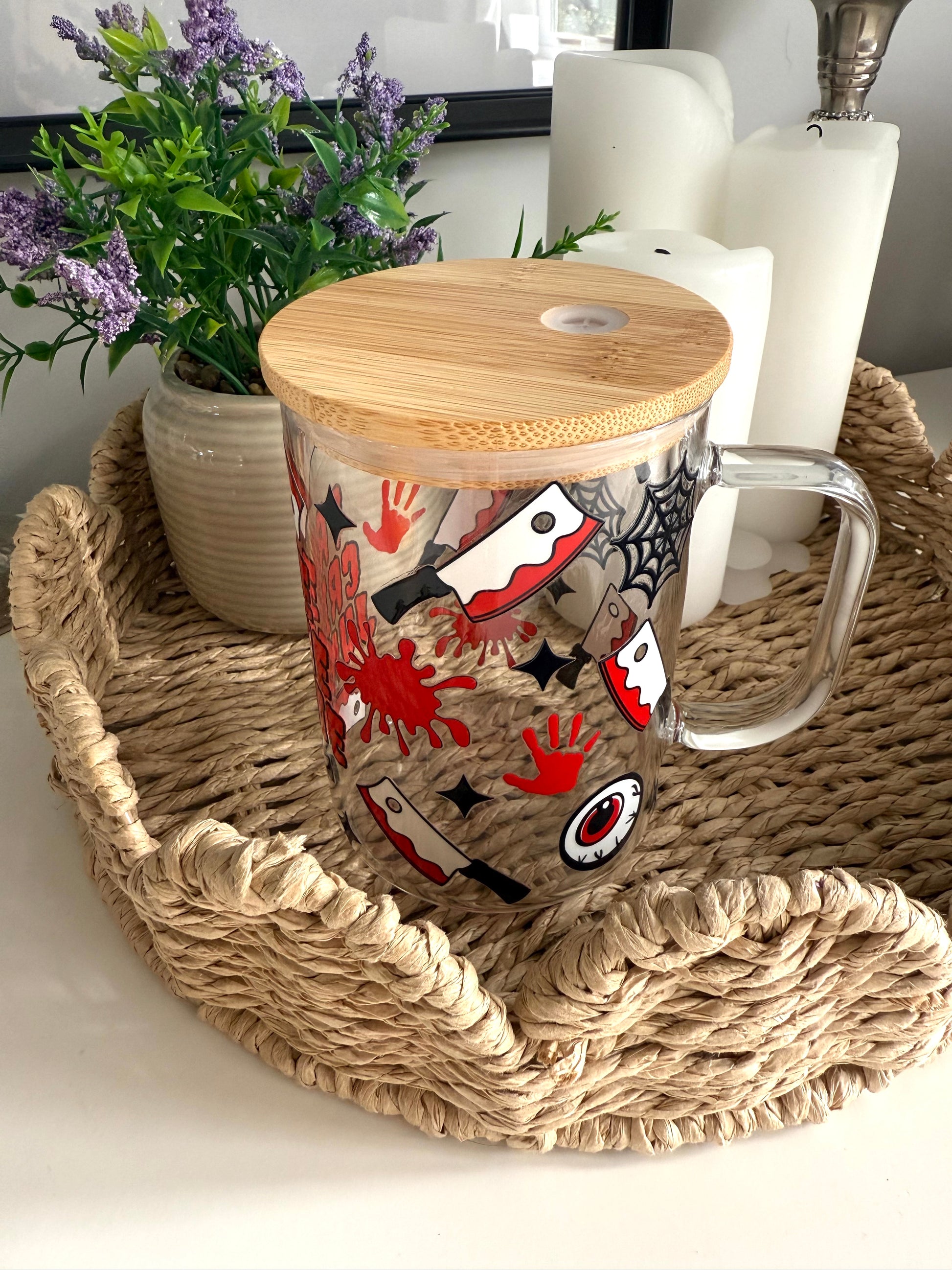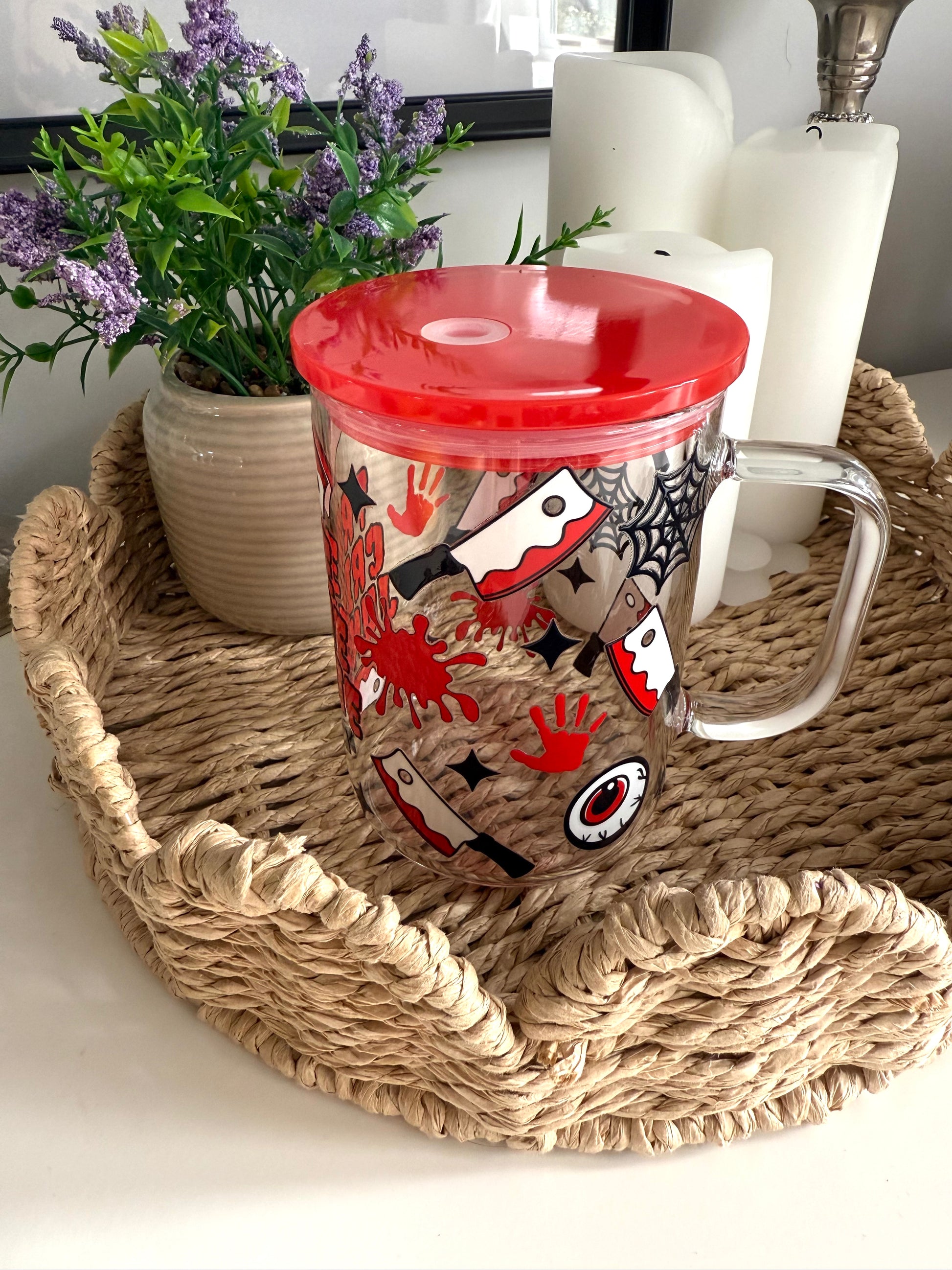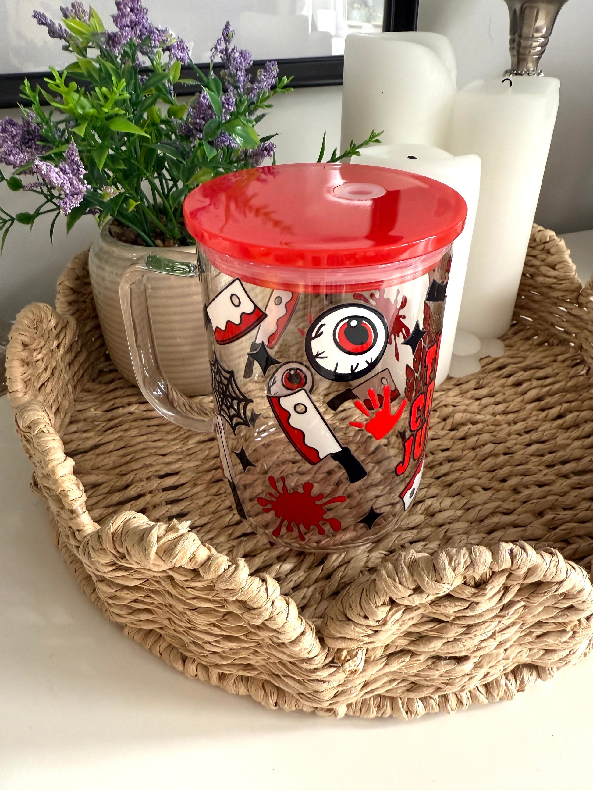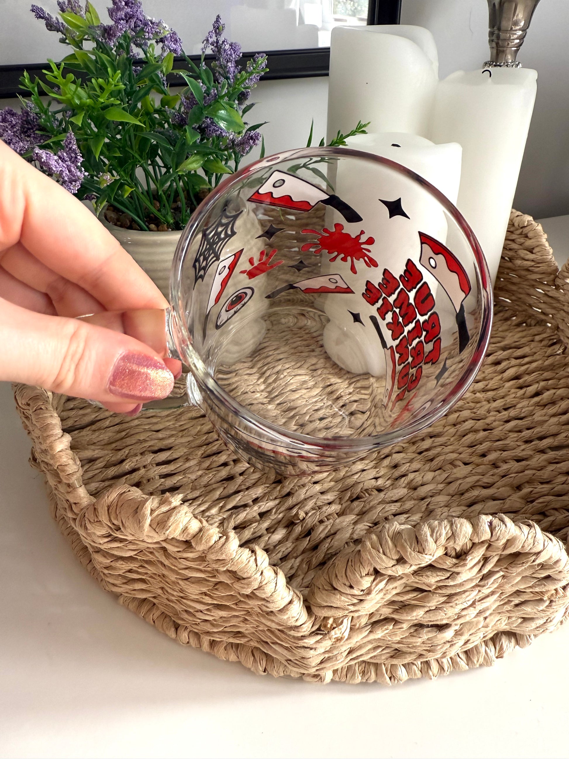 The True Crime Junkie glass mug is a bold and edgy statement piece, featuring red retro lettering and razor blade graphics for those who love their drinks served with a side of mystery. Perfect for sipping your favourite beverage while binging podcasts, documentaries, or your latest whodunit.